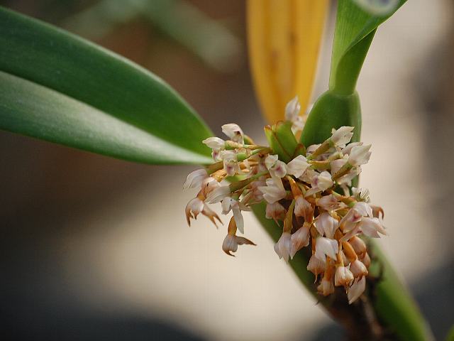 マキシラリア・デンサ 冬の花 2016年02月05日 マキシラリア・デンサはラン科マキシラリア属の多年草である。マキシラリア属はフロリダからアルゼンチンにかけて南北アメリカ大陸に400種くらい分布する着生種である。本種の原産地はメキシコからコロンビアにかけてである。標高2500メートルまでの湿った森に生える。草丈は30センチくらいである。葉はへら形である。開花時期は冬から春である。花径2センチくらいの小さな花を群がるようにつける。花の色は淡い黄色やサーモンピンクなどである。属名の Maxillaria はラテン語の「maxilla(顎の骨)」からきている。ずい柱と唇弁の形が口をひらいた昆虫の形に似ていることから名づけられた。種小名の densa は「生い茂った」という意味である。写真は2月に川口市立グリーンセンターで撮った。学名:Maxillaria densa★地味だけどつけた花房びっしりと これも蘭だよメキシコの花花図鑑植物図鑑|味の麺匠戸田久|おこめの鬼平|フロム蔵王|花の本屋さん|楽天トラベル|