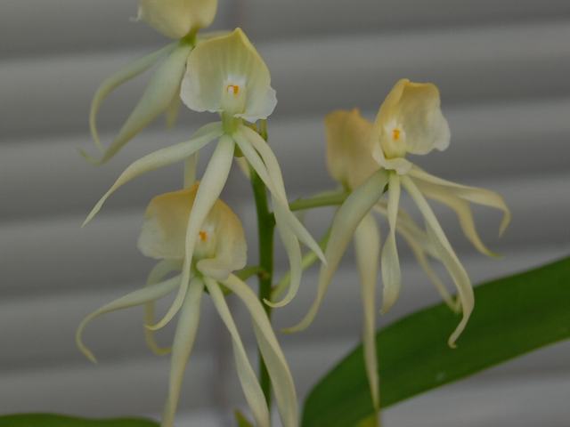 エンキクリア・コクレアタ・アルバ 四季咲きの花 2012年01月06日 エンキクリア・コクレアタ・アルバはラン科エンキクリア属の多年草である。北アメリカのフロリダ半島からベリーズなどカリブ海沿岸諸国に分布する着生種である。基本種はベリーズの国花とされている。草丈は20センチくらいである。葉は披針形(笹の葉のような形)である。開花時期はほぼ周年である。花茎を伸ばして総状花序(柄のある花が花茎に均等につく)を出し、花径5センチくらいの白い花をつける。唇弁が上にあり、花弁、萼片は下方へ垂れ下がる。基本種の場合は、唇弁が暗い紫色で黄色い筋が入る。属名の Encyclia はギリシャ語の「enkykleomai(取り囲む)」からきている。種小名の cochleata は「螺旋状の」という意味である。品種名の alba は「白い」という意味である。写真は12月につくば植物園で撮った。学名:Encyclia cochleata f. alba★蛸の足思わすようなその姿 愛嬌がある自然の造形植物図鑑花図鑑|味の麺匠戸田久|おこめの鬼平|フロム蔵王|花の本屋さん|楽天トラベル|