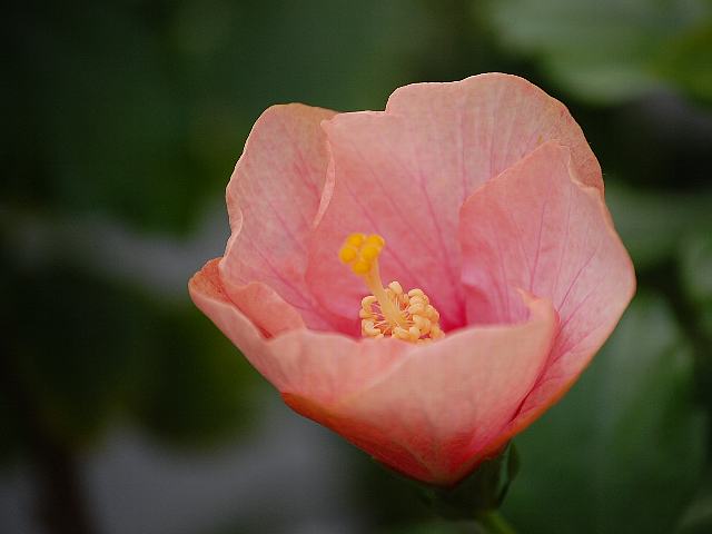 ピンク・ビブラート 四季咲きの花 2013年02月01日 ハイビスカスはアオイ科フヨウ属の植物の総称である。多くの園芸品種が生まれているが、主に3系統に分類されている。ピンク・ビブラート(Pink Vibrato)もその1つで、オールド系に属する。仏桑花(ブッソウゲ:Hibiscus rosa-sinensis)やヨーロピアン系と呼ばれるものなどがこの系統に属する。樹高は1メートルから2メートルである。葉は楕円形で互い違いに生える(互生)。手のひら状に裂けるものもあり、葉の縁には粗いぎざぎざ(鋸歯)がある。開花時期は周年である。花の色は淡いピンクである。花弁のつけ根は濃い赤色になるので、花の真ん中に目があるように見える。花弁にはひだがあり、外側に反っている。花柱は淡いピンクで、柱頭は黄色い。属名の Hibiscus はギリシャ語由来で「Hibis(エジプトの女神)」の名からきているとの説があり、大形のゼニアオイ属につけられた名である。写真は11月に沖縄県本部町の熱帯ドリームセンターで撮った。学名:Hibiscus 'Pink Vibrato'★この花も産まれはきっとヨーロッパ すかっと開いた姿が見たい花図鑑植物図鑑|味の麺匠戸田久|おこめの鬼平|フロム蔵王|花の本屋さん|楽天トラベル|