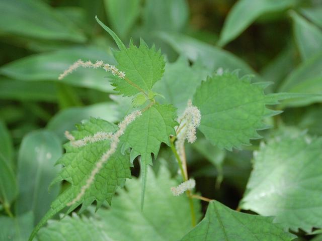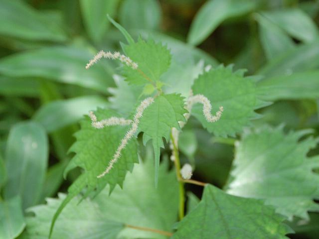 草小赤麻(クサコアカソ) 夏の花 2013年08月14日 草小赤麻(クサコアカソ)はイラクサ科カラムシ属の多年草である。北海道から九州にかけて分布し、人里や山地のやや湿った草地に生える。海外では、中国にも分布する。草丈は50~100センチくらいである。葉は楕円形で、向かい合って生える(対生)。葉には柄があり、縁にはぎざぎざ(鋸歯)がある。葉の先が尾状に尖るのが特徴である。別名を丸葉赤麻(マルバアカソ)ともいう。なお、「赤麻」の名は「麻」のように繊維がとれて茎や葉の柄が赤褐色を帯びることからきている。開花時期は7~9月である。雌雄同株である。雌花は茎の上部の葉の脇に赤い穂状となってつく。雄花は黄白色で、茎の下部の葉の脇につく。花の後にできる実はそう果(熟しても裂開せず、種子は1つで全体が種子のように見えるもの)である。属名の Boehmeria はドイツの植物学者「ボーマー(Georg Rudolf Boehmer, 1723-1803)さん」の名からきている。種小名の gracilis は「細長い」という意味である。写真は8月に奥日光の戦場ヶ原で撮った。学名:Boehmeria gracilis★花見れば雑草だけど面白い 葉っぱの形個性があって花図鑑植物図鑑|味の麺匠戸田久|おこめの鬼平|フロム蔵王|花の本屋さん|楽天トラベル|