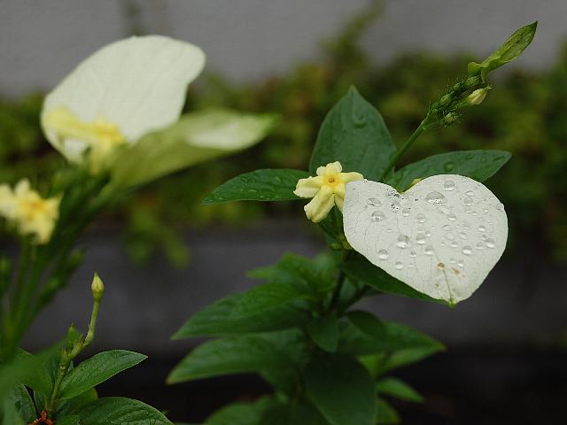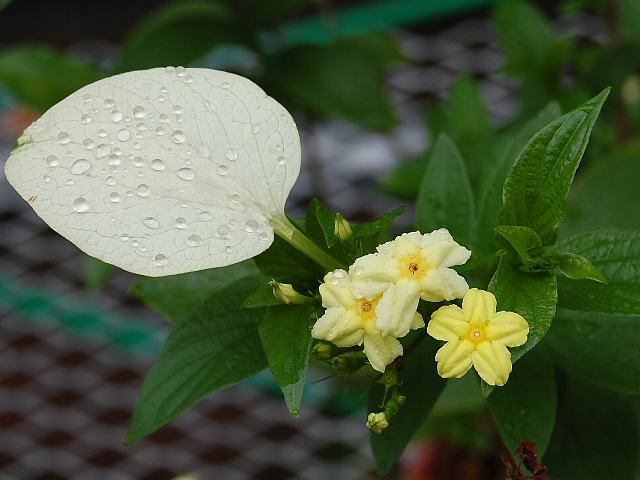 ムッサエンダ・ルテオラ 未選択 2013年08月17日 ムッサエンダ・ルテオラはアカネ科コンロンカ属の半蔓性常緑低木である。原産地はスーダンの東部である。和名は薄黄崑崙花(ウスギコンロンカ)という。樹高は1~3メートルくらいである。葉は楕円形で、向かい合って生える(対生)。葉質は薄く、艶はない。暖地での開花時期は5~9月である。茎先に散房花序(柄のある花がたくさんつき、下部の花ほど柄が長いので花序の上部がほぼ平らになる)を出し、黄色い花を疎らにつける。1つ1つの花は萼片の1枚が花びらのように大きくなったものである。花径は1~2センチで、先が5つに深く裂ける。花序の中には別に葉のようになった萼裂片が1~2個ある。淡い黄色で長さが4センチくらいの倒卵形である。花の後にできる実は液果(果皮が肉質で液汁が多い実)である。属名の Mussaenda はスリランカでの現地名からきている。種小名の luteola は「黄色がかった」という意味である。写真は8月に北大植物園で撮った。学名:Mussaenda luteola★ハンカチの花と呼ばれるルテオラの 生まれ故郷はスーダンの地に花図鑑植物図鑑|味の麺匠戸田久|おこめの鬼平|フロム蔵王|花の本屋さん|楽天トラベル|PR