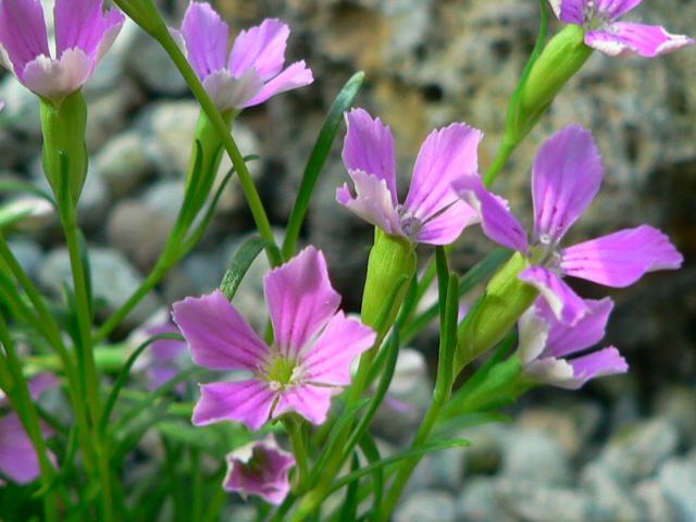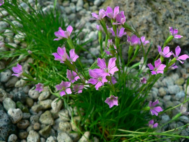 ディアンツス・グラキアリス 夏の花 2013年08月08日 ディアンツス・グラキアリスはナデシコ科ナデシコ属の多年草である。属名の読み方は「ダイアンサス」、種小名の読み方は「グラシアリス」とするものもある。原産地はヨーロッパである。標高2000~3000メートルの高山の草地に生える。流通名を氷河撫子(ヒョウガナデシコ)という。草丈は5~10センチくらいである。葉は線形で、向かい合って生える(対生)。葉の質は肉質で分厚い。開花時期は7~9月くらいである。花は紅紫色をした5弁花で、花弁の先は切れ込む。花径は15~20ミリくらいである。花の後にできる実はさく果(熟すると下部が裂け、種子が散布される果実)である。属名の Dianthus はギリシャ語の「Dios(ジュピター)+anthos(花)」からきている。「ジュピターの花」の意味で、花の美しさを称えて名づけられた。種小名の glacialis は「氷河地帯に生える」という意味である。写真は10月に大阪市の咲くやこの花館で撮った。学名:Dianthus glacialis★アルプスのお花畑に咲く姿 いかばかりかと思いめぐらし花図鑑植物図鑑|味の麺匠戸田久|おこめの鬼平|フロム蔵王|花の本屋さん|楽天トラベル|