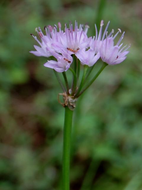アリウム・キアネウム 夏の花 2013年08月04日 アリウム・キアネウムはユリ科ネギ属の多年草である。分類体系によってはネギ科とされる。原産地は朝鮮半島、中国である。標高2100~5000メートルの草地や斜面に生える。中国名は「天藍韭」という。英名はダークブルーガーリック(dark blue garlic)である。草丈は10センチから30センチくらいである。根際から生える葉は線形である。開花時期は7月から8月である。茎先に散形花序(枝先に1個つずつ花がつく)を出し、藍色ないし紅紫色の花を咲かせる。花序径は4センチくらいである。花の後にできる実はさく果(熟すると下部が裂け、種子が散布される果実)である。属名の Allium はニンニクの古いラテン名である。種小名の cyaneum は「暗い藍色の」という意味である。写真は8月に日光植物園で撮った。同園では「Allium cyneum 北アメリカ」として表示しているが、同園以外では類例がほとんどない。学名:Allium cyaneum★表示とは少し違うが恐らくは この花だろう載せておこうか花図鑑植物図鑑|味の麺匠戸田久|おこめの鬼平|フロム蔵王|花の本屋さん|楽天トラベル|