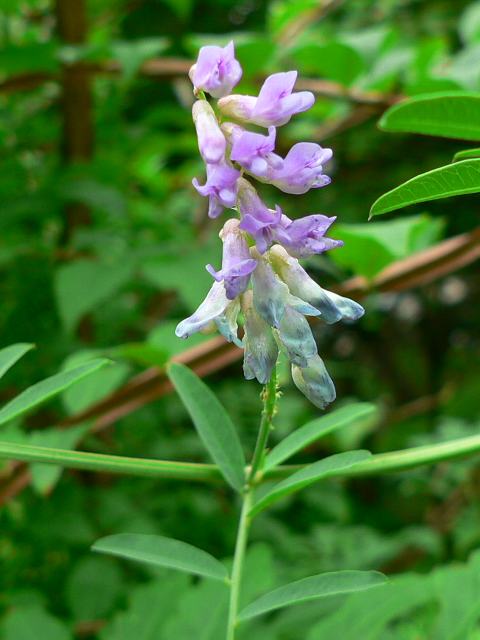 野原草藤(ノハラクサフジ) 夏の花 2013年08月07日 野原草藤(ノハラクサフジ)はマメ科ソラマメ属の蔓性多年草である。秋田県、千葉県、愛知県、鹿児島県などに隔離分布し、山地の草地や林の縁、河原、海岸などに生える。海外では、朝鮮半島、中国東北部、アムール地方、ウスリー地方にも分布する。草丈は100~150センチくらいである。葉は1回羽状複葉(鳥の羽のように左右に小葉がいくつか並んで1枚の葉が構成される)で、小葉の形は幅の広い卵形である。葉はやや白い粉を帯びている。小葉の数は5対から8対くらいである。近縁種の草藤(クサフジ)の場合は、小葉の幅が狭く、9対から12対と数が多い。開花時期は7月から9月である。葉の脇から総状花序(柄のある花が花茎に均等につく)を出し、青紫色ないし紅紫色をした蝶形の花をつける。花の後にできる実は豆果(莢の中に種子が入るもの)である。属名の Vicia はラテン語の「vincire(巻きつく)」からきている。この属には蔓性の植物が多いことから名づけられた。種小名の amurensis は「アムール地方の」という意味である。写真は9月につくば植物園で撮った。学名:Vicia amurensis★どのような訳で点在するのやら 調べたくなる野原草藤花図鑑植物図鑑|味の麺匠戸田久|おこめの鬼平|フロム蔵王|花の本屋さん|楽天トラベル|PR