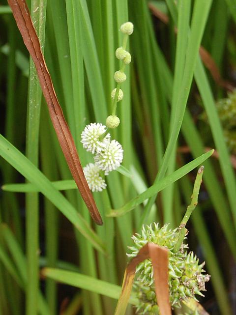 姫実栗(ヒメミクリ) 夏の花 2013年07月19日 姫実栗(ヒメミクリ)はミクリ科ミクリ属の多年草である。抽水植物で根は水底の土の中にあり、茎や葉が水面から上に伸びている。北海道から九州にかけて分布し、湿地や河川などに生える。海外では、北半球の各地やオーストラリアに広く分布する。環境省のレッドリスト(2007)では、「絶滅の危険が増大している種」である絶滅危惧II類(VU)に登録されている。草丈は40~90センチくらいである。葉は線形で、互い違いに生える(互生)。開花時期は7~8月である。茎の上部に雄花序、下部に雌花序をつける。花の色は緑白色である。花の後に、緑色の球形で栗のイガに似た集合果をつける。和名の由来は、実が栗のいがに似ていることからきている。属名の Sparganium はギリシャ語の「sparganon(帯)」からきている。種小名の subglobosum は「やや球形の」という意味である。写真は9月に大阪市大植物園で撮った。学名:Sparganium subglobosum★面白い形に笑みが浮かび出る 実栗の仲間個性たっぷり植物図鑑花図鑑|味の麺匠戸田久|おこめの鬼平|フロム蔵王|花の本屋さん|楽天トラベル|