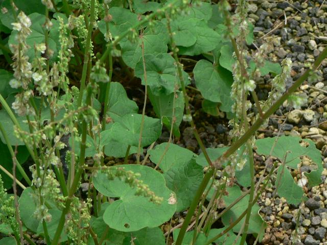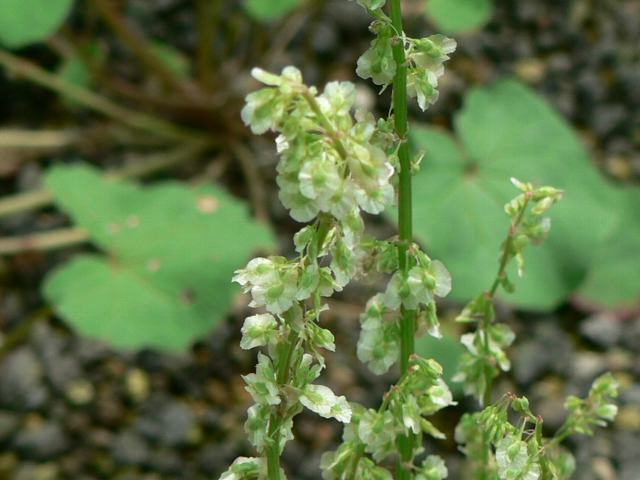 腎葉酸葉(ジンヨウスイバ) 夏の花 2013年07月01日 腎葉酸葉(ジンヨウスイバ)はタデ科ジンヨウスイバ属の多年草である。1属1種である。ギシギシ属とは萼片の数が異なる。北海道から本州の中部地方にかけて分布し、高山に生える。海外では、周北極地域と北半球の高山(ロッキー山脈、アルプス山脈、ヒマラヤ山脈など)に広く分布する。和名の由来は腎形の葉をつける「酸葉」というところからきている。別名を丸葉羊蹄(マルバギシギシ)ともいう。草丈は5~30センチくらいである。全体に毛は生えていない。根際から生える葉には長い柄があり、腎円形をしている。開花時期は7~8月である。茎の上部で枝分かれをしてたくさんの総状花序(柄のある花が花茎に均等につく)を出し、緑白色ないし紅色の花をぶら下げる。花には花弁はなく、萼片が4枚である。雄しべは6本である。花の後にできる実は扁平なそう果(熟しても裂開せず、種子は1つで全体が種子のように見えるもの)である。属名の Oxyria はギリシャ語の「oxys(酸っぱい)」からきている。葉が酸っぱいことを表したものである。種小名の digyna は「2本の雌しべの」という意味である。写真は6月に富山県中央植物園で撮った。学名:Oxyria digyna★葉の形違っているのでよくわかる 腎葉酸葉は高山の花花図鑑植物図鑑|味の麺匠戸田久|おこめの鬼平|フロム蔵王|花の本屋さん|楽天トラベル|