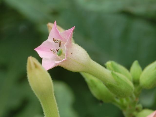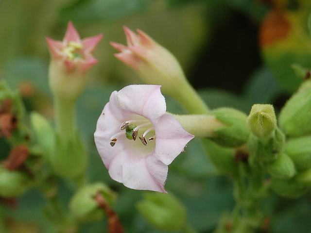 煙草(タバコ) 夏の花 2013年07月04日 煙草(タバコ)はナス科タバコ属の一年草である。原産地は南アメリカである。コロンブスによってヨーロッパへもたらそれた。はじめは観賞用や薬用に栽培されたという。日本へは16世紀に鉄砲とともにポルトガル人によって伝えられた。「タバコ」という言葉もポルトガル語である。江戸時代には喫煙禁止令がたびたび出されたが、これは防火と贅沢禁止が目的であったそうである。現在は東北から沖縄にかけて、ほとんどの府県で栽培されている。しかし、花を咲かせて結実させると葉の品質が落ちるので、栽培用のものは花が切除される。草丈は150~200センチくらいである。全草に毛が生える。葉は細長い楕円形で、互い違いに生える(互生)。開花時期は7~8月である。茎先に総状花序(柄のある花が花茎に均等につく)を出し、ピンクないし黄色の漏斗状の花をつける。花の後にできる実は楕円形のさく果(熟すると下部が裂け、種子が散布される果実)である。有毒植物で、農業用殺虫剤の製造原料ともされる。属名の Nicotiana はフランスの外交官「ジャン・ニコ(Jean Nicot, 1530-1600)さん」の名からきている。初めてタバコの種子をフランスにもたらしたことから名づけられた。種小名の tabacum はネイティブアメリカンの言葉で「タバコ」のことである。写真は9月に東京都薬用植物園で撮った。学名:Nicotiana tabacum★摘まれるが定めなりきと知りながら 気丈に開く煙草の花は花図鑑植物図鑑|味の麺匠戸田久|おこめの鬼平|フロム蔵王|花の本屋さん|楽天トラベル|PR