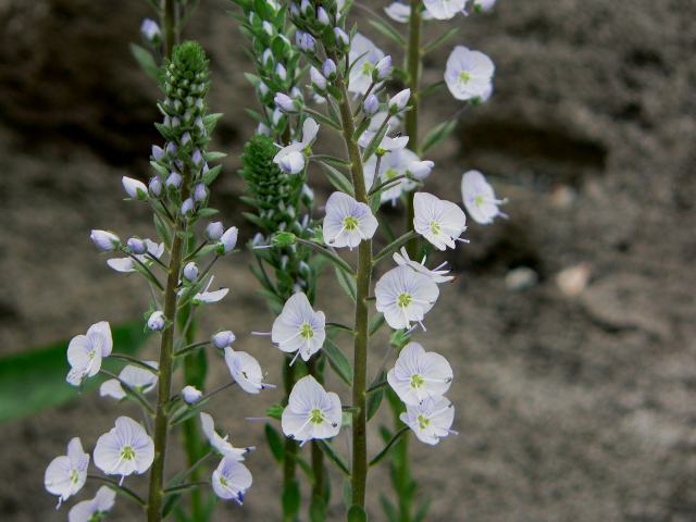 ベロニカ・ゲンチアノイデス 夏の花 2013年06月23日 ベロニカ・ゲンチアノイデスはゴマノハグサ科クワガタソウ属の多年草である。分類体系によってはオオバコ科とされる。原産地はイラン、トルコ、コーカサス地方などである。山地の草地に生える。日本へは昭和時代の初期に渡来した。草丈は30~50センチくらいである。根際から生える葉は楕円形ないし披針形(笹の葉のような形)で、ロゼット状(茎から葉が重なり合って出て地に接し、円座形になったもの)となる。葉には艶があり、濃い緑色である。茎につく葉は小さく、互い違いに生える(互生)。開花時期は5~7月である。花茎をのばして緩やかな総状花序(柄のある花が花茎に均等につく)を出し、下から順に咲き上る。花径は5ミリくらいで、花冠は4つに裂けて皿形に開く。花の色は淡い青紫色で、花冠の内側には縦に青い筋が入る。萼片は4枚、雄しべは2本、雌しべは1本である。花の後にできる実はさく果(熟すると下部が裂け、種子が散布される果実)である。属名の Veronica は聖者ベロニカに捧げられた名である。種小名の gentianoides は「リンドウ属(Gentiana)に似た」という意味である。写真は4月に神奈川県立フラワーセンター大船植物園で撮った。学名:Veronica gentianoides★薄っすらと青みを帯びた花の色 お洒落な筋がとても似合うよ花図鑑植物図鑑|味の麺匠戸田久|おこめの鬼平|フロム蔵王|花の本屋さん|楽天トラベル|