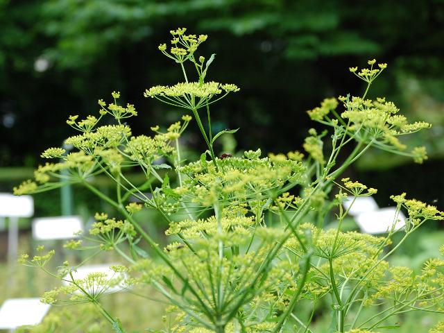 アメリカ防風(アメリカボウフウ) 夏の花 2013年06月24日 アメリカ防風(アメリカボウフウ)はセリ科アメリカボウフウ属の一年草ないし越年草である。原産地は地中海沿岸地方からコーカサス地方にかけてである。「アメリカ」の名がつくがアメリカ原産ではない。「防風」は生薬に用いられる中国産のセリ科の植物名からきている。別名をパースニップ(parsnip)という。この名は英名からきている。ギリシャ・ロ-マの時代から根菜として栽培されてきた。草丈は70~110センチくらいである。茎につく葉は奇数羽状複葉(鳥の羽のように左右に小葉がいくつか並び、先に1つの小葉がついて1枚の葉が構成される)で、互い違いに生える(互生)。小葉の形は卵形である。小葉の縁にはぎざぎざ(鋸歯)があり、頂上葉は浅く裂ける。根際から生える葉には長い柄があり、束生する。開花時期は5~6月くらいである。茎先に複数の散形花序(たくさん枝が出て、先に1個つずつ花がつく)を組み合わせて出し、黄色い小さな花をたくさんつける。花弁は5枚で内側に曲がる。雄しべは5本である。食用とされる根は長さが30~50センチくらいあり、人参(ニンジン)のような逆円錐形をしている。色は黄白色で、甘みがある。花の後にできる実は分果(複数の子房からできた果実)で、2ブロックで構成される。属名の Pastinaca はラテン語の「pastus(食物)」からきている。根茎を食用にすることから名づけられた。種小名の sativa は「栽培された」という意味である。写真は6月に東京都薬用植物園で撮った。学名:Pastinaca sativa★防風と思えぬような姿して だけど根っこは食べられるとさ花図鑑植物図鑑|味の麺匠戸田久|おこめの鬼平|フロム蔵王|花の本屋さん|楽天トラベル|
