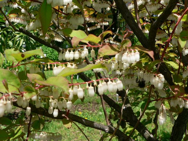 捩木(ネジキ) 夏の花 2013年06月25日 捩木(ネジキ)はツツジ科ネジキ属の落葉小高木である。本州の岩手県から九州にかけて分布し、山地に生える。海外では、台湾、中国にも分布する。樹高は2~8メートルくらいである。樹皮は白っぽい。葉は楕円形で、互い違いに生える(互生)。葉の縁にぎざぎざ(鋸歯)はなく、波打っている。葉の先はよじれて尖る。開花時期は5~6月である。葉の脇から総状花序(柄のある花が花茎に均等につく)を出し、小さな白い壺形の花をたくさん垂れ下げる。花冠の長さは1センチくらいで、先は5つに浅く裂ける。花の後にできる実は球形のさく果(熟すると下部が裂け、種子が散布される果実)で、上向きにつく。和名の由来は、幹が捩れることからきている。馬酔木(アセビ)と同様に葉には有毒成分を含む。秋には紅葉をする。属名の Lyonia はアメリカの植物収集家「ライオン(John Lyon, ?-1818)さん」の名からきている。種小名の ovalifolia は「広楕円形の葉の」という意味である。変種名の elliptica は「楕円形の」という意味である。写真は5月に小石川植物園で撮った。学名:Lyonia ovalifolia var. elliptica★葉の陰に鈴蘭思わす壺形の 花がずらりと居並ぶように花図鑑植物図鑑|味の麺匠戸田久|おこめの鬼平|フロム蔵王|花の本屋さん|楽天トラベル|