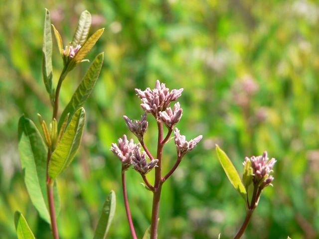 バシクルモン 夏の花 2013年06月30日 バシクルモンはキョウチクトウ科バシクルモン属の多年草である。日本固有種である。面白い名前はアイヌ語に由来する。「パスクル(カラス)」+「ムム(草)」の転訛したものである。別名を忍路草(オショロソウ)ともいう。これは小樽市の忍路海岸に生えることからきた名前である。北海道と本州の青森県から新潟県にかけての日本海側に分布し、海岸の草地に生える。環境省のレッドリスト(2007)では、「絶滅の危険が増大している種」である絶滅危惧II類(VU)に登録されている。草丈は40~80センチくらいである。根茎は太く、木質化して広がる。茎は赤味を帯びていて直立し、上部でよく枝分かれをする。葉は長さ2~5センチの長い楕円形で、短い柄がある。枝分かれした部分では向かい合って生え(対生)、幹の部分では互い違いに生える(互生)。開花時期は6~7月である。茎先に円錐花序(下のほうになるほど枝分かれする回数が多く、全体をみると円錐形になる)を出し、淡い紅紫色の小さな花をつける。花冠は狭い鐘形で、先は5つに裂ける。なお、本種の基本種は中国などに分布する羅布麻(ラマフ)である。薬草として知られる。属名の Apocynum はギリシャ語の「apo(去って)+cyno(犬)」からきている。「犬除け」の意味で、その毒性から名づけられた。種小名の venetum はイタリアの「ベネト州(Veneto)の」という意味である。変種名の basikurumon は日本語の「バシクルモン」からきている。写真は6月に氷見市海浜植物園で撮った。まだ蕾である。学名:Apocynum venetum var. basikurumon(=Trachomitum venetum var. basikururmon)★海岸の草地が好きなバシクルモン 潮風好きと戯れ遊び花図鑑植物図鑑|味の麺匠戸田久|おこめの鬼平|フロム蔵王|花の本屋さん|楽天トラベル|PR
