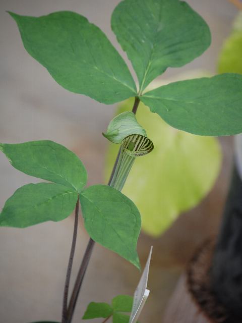 アリサエマ・トリフィルム・ポリモルフム 春の花 2013年05月17日 アリサエマ・トリフィルムはサトイモ科テンナンショウ属の多年草である。原産地は北アメリカで、水辺などに生える。英名はジャックインザプルピット(Jack in the pulpit)である。プルピットは説教壇を意味する。ネイティブアメリカンは幅広い用途の薬草としてこの植物を用いた。蛇に噛まれたときに用いたり、リウマチと気管支炎の薬ともされたという。ポリモルフムはその変種(var. polymorphum)である。草丈は30~65センチくらいである。根際から1枚の葉が生える。葉は3小葉に分かれる。小葉の形は楕円形である。開花時期は4~6月くらいである。茎先に仏炎苞(サトイモ科の肉穂花序に見られる花序を被う大形の苞)を出し、肉穂花序(柄のない花が花茎に均等につき、主軸が肉厚に膨らんだもの)をつける。仏炎苞は黄緑色で紫褐色のストライブが入る。花は単性花である。初めは雄花で、やがて雌花に変わるものが表れる。花の後、雌花には小さな液果(果皮が肉質で液汁が多い実)の集合果がつき、秋には真っ赤に熟する。 属名の Arisaema はギリシャ語の「aris(植物名の1つ)+haima(血)」からきている。血のような斑点が葉にある植物といった意味合いになる。種小名の triphyllum は「3枚の葉の」という意味である。変種名の polymorphum は「多形の」という意味である。写真は5月につくば植物園で撮った。学名:Arisaema triphyllum var. polymorphum★アメリカの広い範囲に咲くようだ 天南星の仲間の花が花図鑑植物図鑑|味の麺匠戸田久|おこめの鬼平|フロム蔵王|花の本屋さん|楽天トラベル|PR