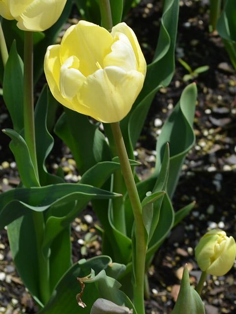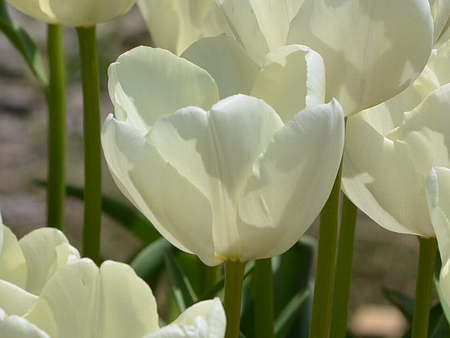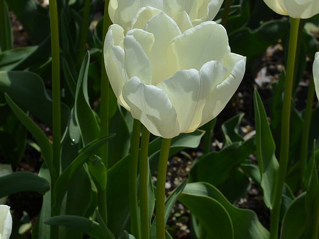 銀盃(ギンパイ) 春の花 2013年05月10日 チューリップはユリ科チューリップ属の多年草である。原産地は地中海沿岸地方から中央アジアにかけた一帯である。17世紀のオランダで熱狂的なブームを巻き起こした。今日では園芸品種の数は4000種を超えるという。銀盃(ギンパイ)もその中の1つである。富山県で育成された品種である。中生咲き(4月中旬から5月上旬)の一重遅咲き系(SL:Single Late)に含まれる。草丈は長茎(55センチから60センチ)である。根際から生える葉は帯状である。花の色はクリーム色で、咲き進むと白くなる。写真は4月に砺波チューリップ公園で撮った。学名:Tulipa 'Ginpai'★この花がこれから白くなるんだな いつか見たいなそんな姿も花図鑑植物図鑑|味の麺匠戸田久|おこめの鬼平|フロム蔵王|花の本屋さん|楽天トラベル|