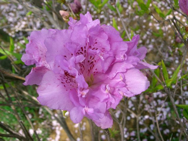 淀川躑躅(ヨドガワツツジ) 春の花 2013年05月12日 淀川躑躅(ヨドガワツツジ)はツツジ科ツツジ属の落葉低木である。原産地は朝鮮半島である。日本では栽培品種として愛好されている。耐寒性があり植栽可能地域が広いことから、各地で庭園や公園に植えられ、また生垣やボーダーなどに使用されている。樹高は1~2メートルである。葉は細長い楕円形で、互い違いに生える(互生)。開花時期は4~5月である。花の色は淡い紫色で、八重咲きである。これは、朝鮮山躑躅(チョウセンヤマツツジ)の雄しべが弁化して八重咲きとなったものである。朝鮮半島では自生しているものもある。「躑躅の女王」とも呼ばれ、牡丹躑躅(ボタンツツジ)の別名がある。属名の Rhododendron はギリシャ語の「rhodon(バラ)+dendron(樹木)」からきている。紅色の花をつける木という意味で名づけられた。亜種名の yedoense は「江戸の」という意味である。写真は5月に函館市の「市民の森」で撮った。学名:Rhododendron yedoense★豪快に八重の花びら開き咲く 淀川躑躅風格備え花図鑑植物図鑑|味の麺匠戸田久|おこめの鬼平|フロム蔵王|花の本屋さん|楽天トラベル|PR