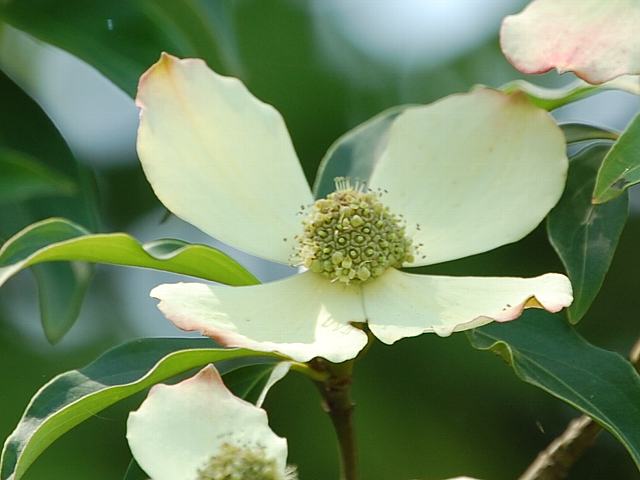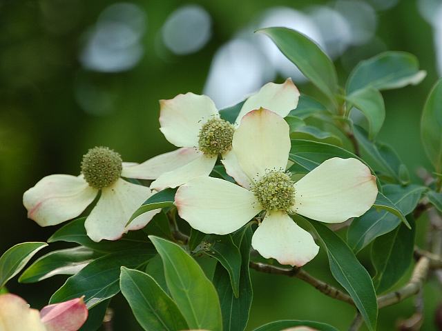 ヒマラヤ山法師(ヒマラヤヤマボウシ) 夏の花 2016年05月06日 ヒマラヤ山法師(ヒマラヤヤマボウシ)はミズキ科ヤマボウシ属(ベンタミディア属)の常緑高木である。ベンタミディア属はアジアと北アメリカに5種が分布する。日本にも山法師(ヤマボウシ)が分布し、属名の和名はヤマボウシ属という。ただし、分類体系によっては(APGIII)ミズキ属(Cornus)に含め、ヤマボウシ亜属とする場合もある。本種の原産地は中国の南西部(貴州、四川、チベット、雲南省)とヒマラヤ(ミャンマー、ブータン、ネパール、インド)である。標高1000メートルから3200メートルの森に生える。中国名は頭状四照花という。樹高は6メートルから12メートルくらいである。葉は細長い楕円形で、互い違いに生える(互生)。開花時期は5月から6月である。枝先に花びらのように見えるクリーム色の総苞(花序全体を包む葉の変形したもの)を4枚つけ、真ん中に小さな緑色の花を密生させる。山法師(ヤマボウシ)の場合は総苞の色がもっと白っぽい。花の後にできる実は核果(水分が多く柔らかい果皮をもつ果実)で、秋に赤く熟する。赤く熟した実は食べられる。属名の Benthamidia はイギリスの植物学者「ベンサム(George Bentham, 1800-1884)さん」の名からきている。種小名の capitata は「頭状の」という意味である。写真は6月に神奈川県立フラワーセンター大船植物園で撮った。学名:Benthamidia capitata(syn. Cornus capitata)★花の色少し違って面白い 寒地の木だが葉は落ちないよ花図鑑植物図鑑ミラーサイト|味の麺匠戸田久|おこめの鬼平|フロム蔵王|花の本屋さん|楽天トラベル|