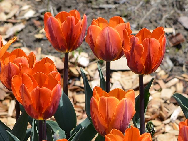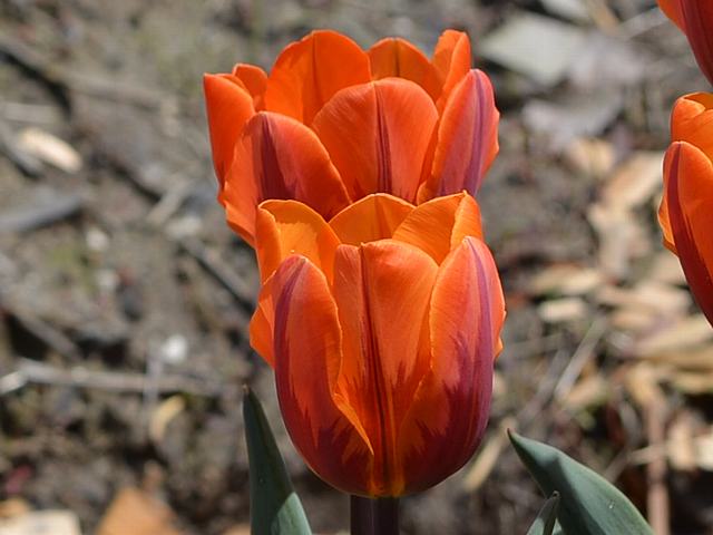プリンセスイレーネ 春の花 2016年05月10日 チューリップはユリ科チューリップ属の多年草である。原産地は地中海沿岸地方から中央アジアにかけた一帯である。17世紀のオランダで熱狂的なブームを巻き起こした。今日では園芸品種の数は4000種を超えるという。プリンセスイレーネもその中の1つである。(チューリップ図鑑参照)1949年にオランダで作出された品種である。中生咲き(4月中旬から5月上旬)のトライアンフ系 (T:Triumph) に含まれる。トライアンフ系というのは、一重早咲き系(SE:Single Early)と一重遅咲き系(SL:Single Late)の交配種である。本種は一重遅咲き系(SL:Single Late)に分類されることもある。草丈は短茎(25センチから40センチ)である。根際から生える葉は帯状である。花の色はオレンジ色である。茎は紫色で、レンブラント咲きをする。レンブラント咲きというのは花弁に赤や紫の絞り模様が入るもののことをいう。本種の場合は火炎状に紅紫色の模様が入る。なお、この品種からは、その後もさまざまなバリエーションが生まれている。属名の Tulipa はペルシャ語の「tulipan(ターバン)」からきている。花の形が似ているということで名づけられた。写真は4月に砺波チューリップ公園で撮った。学名:Tulipa 'Princess Irene'★オランダの伝統引継ぎ燦然と 花を咲かせるプリンセスイレーネ花図鑑植物図鑑ミラーサイト|味の麺匠戸田久|おこめの鬼平|フロム蔵王|花の本屋さん|楽天トラベル|PR