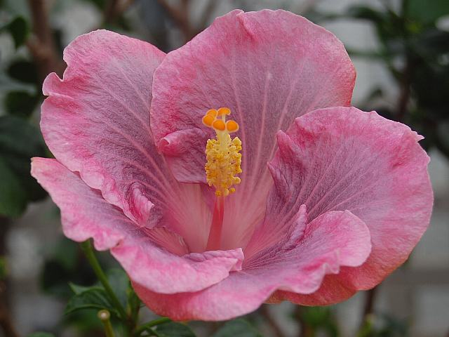 アラモアナ 四季咲きの花 2013年02月19日 ハイビスカスはアオイ科フヨウ属の植物の総称である。多くの園芸品種が生まれているが、主に3系統に分類されている。アラモアナ(Aramoana)もその1つで、ハワイアン系に属する。ハワイアン系はハワイで交配された大輪種で、鑑賞価値が高く数も多い。アラモアナはハワイの言葉でAla(道路)+moana(大海)を意味し、この名前のビーチパークがある。樹高は1メートルから2メートルである。葉は楕円形で互い違いに生える(互生)。手のひら状に裂けるものもあり、葉の縁には粗いぎざぎざ(鋸歯)がある。開花時期は周年である。花の色は紅紫色である。花冠の真ん中は白く、外側に向けて放射状に白い筋が入る。花柱は紅紫色で、柱頭はオレンジ色である。属名の Hibiscus はギリシャ語由来で「Hibis(エジプトの女神)」の名からきているとの説があり、大形のゼニアオイ属につけられた名である。写真は7月に大阪市の咲くやこの花館で撮った。学名:Hibiscus 'Aramoana'★ハワイでは古くからある花という 装いシックにアラモアナ咲く花図鑑植物図鑑|味の麺匠戸田久|おこめの鬼平|フロム蔵王|花の本屋さん|楽天トラベル|