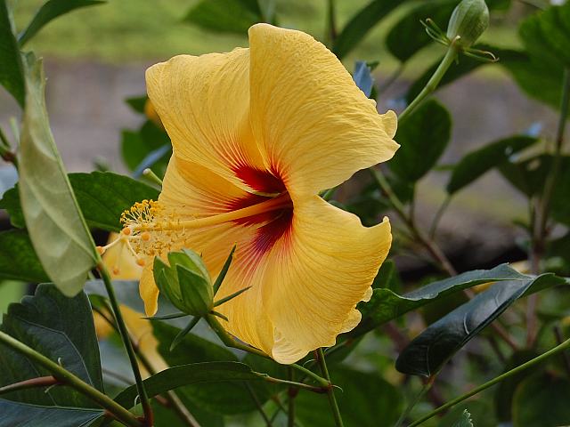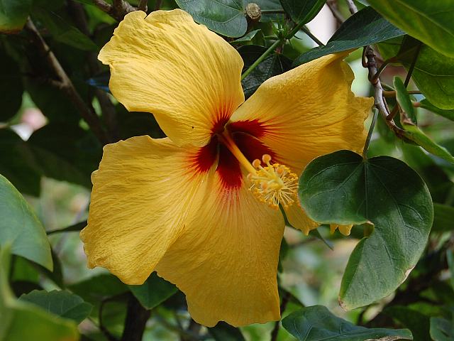 レモンイエロー 四季咲きの花 2013年02月05日 ハイビスカスはアオイ科フヨウ属の植物の総称である。多くの園芸品種が生まれているが、主に3系統に分類されている。レモンイエロー(Lemon Yellow)もその1つで、オールド系に属する。仏桑花(ブッソウゲ:Hibiscus rosa-sinensis)やヨーロピアン系と呼ばれるものなどがこの系統に属する。樹高は1メートルから2メートルである。葉は楕円形で互い違いに生える(互生)。手のひら状に裂けるものもあり、葉の縁には粗いぎざぎざ(鋸歯)がある。開花時期は周年である。花の色は鮮やかな黄色で、真ん中は濃い赤である。花冠はほぼ円形で深く裂け、縁はフリル状になる。花柱はピンクで、柱頭は淡い黄色である。属名の Hibiscus はギリシャ語由来で「Hibis(エジプトの女神)」の名からきているとの説があり、大形のゼニアオイ属につけられた名である。写真は11月に沖縄県本部町の熱帯ドリームセンターで撮った。学名:Hibiscus 'Lemon Yellow'★切れ込んだ花弁がムードを変えて咲く 赤も際立つレモンイエロー花図鑑植物図鑑|味の麺匠戸田久|おこめの鬼平|フロム蔵王|花の本屋さん|楽天トラベル|PR