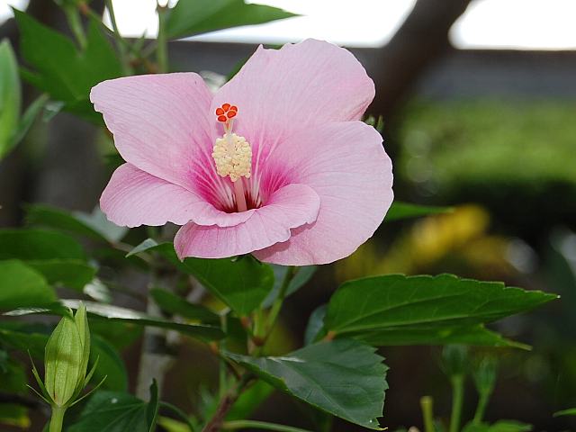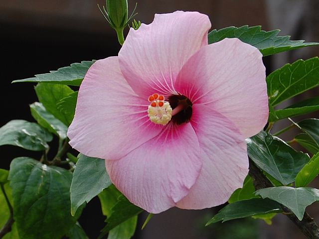 ジョホール 四季咲きの花 2013年01月29日 ハイビスカスはアオイ科フヨウ属の植物の総称である。多くの園芸品種が生まれているが、主に3系統に分類されている。ジョホール(Johore)もその1つで、オールド系に属する。仏桑花(ブッソウゲ:Hibiscus rosa-sinensis)やヨーロピアン系と呼ばれるものなどがこの系統に属する。樹高は1メートルから2メートルである。葉は楕円形で互い違いに生える(互生)。手のひら状に裂けるものもあり、葉の縁には粗いぎざぎざ(鋸歯)がある。開花時期は周年である。花の色はピンクである。花の真ん中は濃い赤で、外側に向けて淡い色にグラデーションがかかる。花冠はラッパ状で上を向いて咲く。また、外側に反り返り、縦の皺が走る。花柱はピンクで、柱頭は赤い。属名の Hibiscus はギリシャ語由来で「Hibis(エジプトの女神)」の名からきているとの説があり、大形のゼニアオイ属につけられた名である。写真は11月に沖縄県本部町の熱帯ドリームセンターで撮った。学名:Hibiscus 'Johore'★花の名の由来ははっきりせぬけれど 反り返り咲く姿うるわし花図鑑植物図鑑|味の麺匠戸田久|おこめの鬼平|フロム蔵王|花の本屋さん|楽天トラベル|