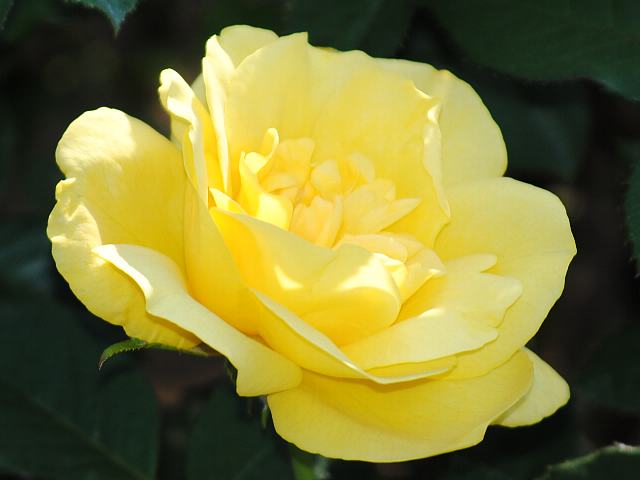 黄金(コガネ) 秋の花 2012年11月27日 黄金(コガネ)はバラ科バラ属の落葉低木である。フロリブンダ系(Floribunda:FL)と呼ばれるものの1つで、四季咲きの中輪である。1993年に日本の京成バラ園芸によって作出された。樹高は70センチくらいである。樹形は横張り性である。花には微香がある。開花時期は5~11月である。花径7~8センチくらいの半剣弁高芯咲きの半八重である。花の色は鮮やかな黄色である。花弁数は25枚くらいである。写真は10月に神代植物公園で撮った。学名:Rosa 'Kogane'★鮮やかな黄金の色がきらきらと 輝き渡る秋空高く花図鑑植物図鑑|味の麺匠戸田久|おこめの鬼平|フロム蔵王|花の本屋さん|楽天トラベル|