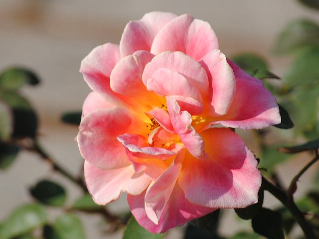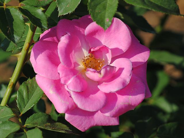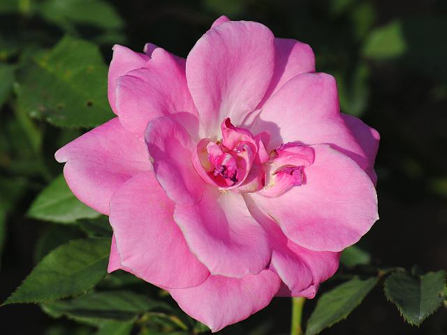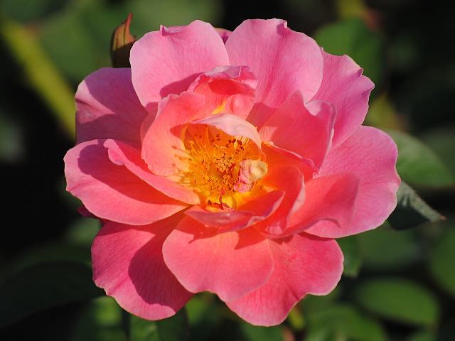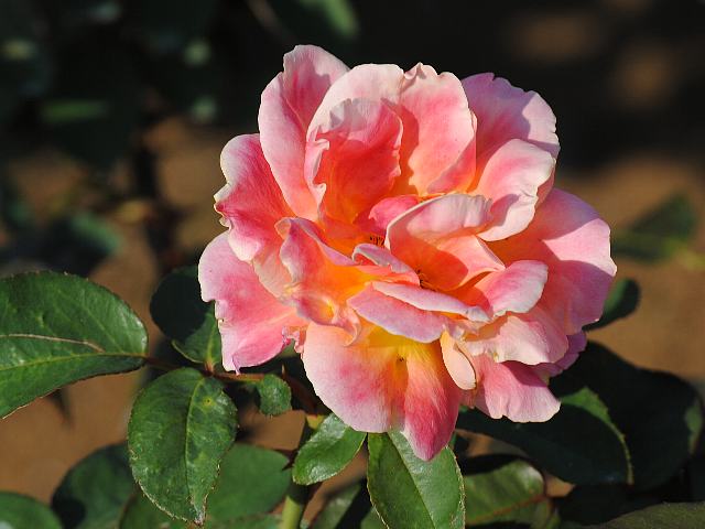 フロリック 秋の花 2012年11月18日 フロリック(Frolic)はバラ科バラ属の落葉低木である。名には「陽気」「戯れ」などの意味がある。フロリブンダ系(Floribunda:FL)と呼ばれるものの1つで、四季咲きの中輪である。1953年にアメリカのハーバート・スイム(Herbert C. Swim)によって作出された。樹高は70~100センチくらいである。樹形は半横張り性である。花には微香がある。開花時期は5~11月である。花径8センチくらいの丸弁平咲きの半八重である。花の色はピンクである。花弁数は20枚くらいである。鉢植えに向いている。写真は10月に神代植物公園で撮った。学名:Rosa 'Frolic'★悪戯で陽気なのかなこの花は ハイな気分にいざなうように花図鑑植物図鑑|味の麺匠戸田久|おこめの鬼平|フロム蔵王|花の本屋さん|楽天トラベル|