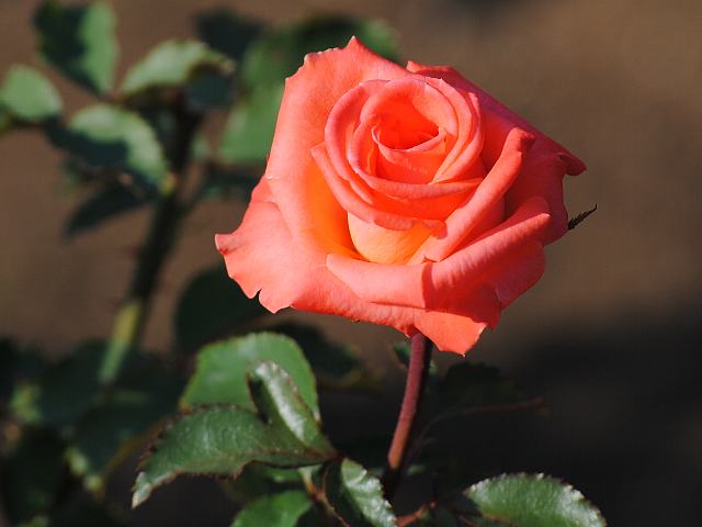 アナベル 秋の花 2012年11月17日 アナベル(Anabell)はバラ科バラ属の落葉低木である。アナベルは女の子の名である。フロリブンダ系(Floribunda:FL)と呼ばれるものの1つで、四季咲きの中輪である。1972年にドイツのコルデス(Reimer Kordes)によって作出された。樹高は60~80センチくらいである。樹形は直立性である。花には微香がある。開花時期は5~11月である。花径10~12センチくらいの剣弁高芯咲きの半八重で、花の色は柔らかな朱色である。花弁数は30枚くらいである。写真は10月に神代植物公園で撮った。学名:Rosa 'Anabell'★調べてもなかなかわからぬ薔薇の花 花咲く場所も数は少なく花図鑑植物図鑑|味の麺匠戸田久|おこめの鬼平|フロム蔵王|花の本屋さん|楽天トラベル|