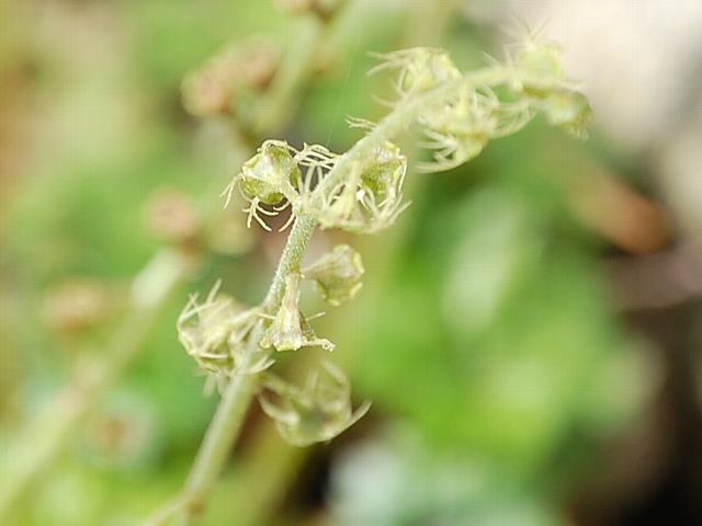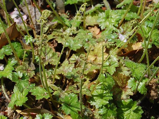 筑紫哨吶草(ツクシチャルメルソウ) 春の花 2016年04月21日 筑紫哨吶草(ツクシチャルメルソウ)はユキノシタ科チャルメルソウ属(ミテラ属)の多年草である。ミテラ属は東アジアや北アメリカに20種くらいが分布する。日本には哨吶草(チャルメルソウ)など10種の固有種が分布し、属名の和名をチャルメルソウ属という。本種も日本固有種である。四国の愛媛県、九州の大分県、熊本県、宮崎県に分布し、山地の谷沿いなどに生える。環境省のレッドリスト(2012)では、「現時点では絶滅危険度は小さいが、生息条件の変化によっては『絶滅危惧』に移行する可能性のある種」である準絶滅危惧(NT)に登録されている。和名の由来は、実の形がチャルメラ(先の開いた喇叭)に似ていて、筑紫(この場合は九州の総称)に産することからきている。草丈は20センチから40センチくらいである。根際から生える葉は長い楕円形で、3つから5つに浅く裂ける。葉の縁には不規則で鋭いぎざぎざ(鋸歯)がある。葉には白い毛と腺毛(毛先から粘液質やゴム質の液を分泌する毛)が生える。開花時期は4月から6月である。茎先に総状花序(柄のある花が花茎に均等につく)を出し、淡い黄緑色をした小さな5弁花をたくさんつける。花弁は5つから7つに裂け、あまり反り返らない。花の後にできる実はさく果(熟すると下部が裂け、種子が散布される果実)である。属名の Mitella はギリシャ語の「mitra(僧侶の帽子)」からきている。若い実の形から名づけられた。種小名の kiusiana は「九州の」という意味である。写真は4月につくば植物園で撮った。学名:Mitella kiusiana★花びらと葉っぱで違いわかるかな どんな具合に撮れているかな花図鑑植物図鑑ミラーサイト|味の麺匠戸田久|おこめの鬼平|フロム蔵王|花の本屋さん|楽天トラベル|