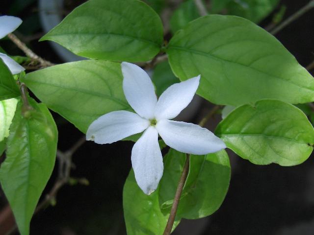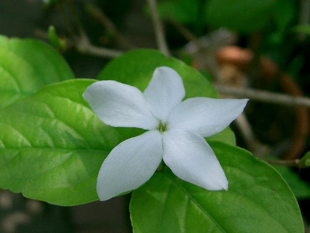 ベンガルコーヒーの木(ベンガルコーヒーノキ) 春の花 2016年04月22日 ベンガルコーヒーの木(ベンガルコーヒーノキ)はアカネ科プシランツス属の常緑低木である。プシランツス属はアジアやアフリカに20種くらいが分布する。本種はかつてはコーヒーノキ属(Coffea)に含まれていたが、フランス人の植物学者ルロワ(Jean-Francois Leroy, 1915-1999)さんによって再分類された。本種の原産地はインド、マレー半島で、栽培もされている。世界のコーヒーの大半はアラビカ種(Coffea arabica)だが、それとは異なる少数派である。自家受粉の可能なことが特徴である。樹高は3メートルから4メートルである。葉は楕円形で、向かい合って生える(対生)。葉には艶がある。開花時期は春から夏にかけてである。花は葉の脇につき、花径2センチくらいの白い合弁花で、5つに深く裂ける。花の後につける実は核果(水分を多く含み中に種が1つある)で、赤く熟する。実の中には種が2つ入っていて、それがコーヒーになる。属名の Psilanthus はギリシャ語の「psilos(裸)+anthos(花)」からきている。種小名の bengalensisは「(インドの)ベンガル地方の」という意味である。写真は4月に東京都薬用植物園の温室で撮った。学名:Psilanthus bengalensis(syn. Coffea bengalensis)★星形の花は真白く照り映えて 気品備えたベンガルコーヒー花図鑑植物図鑑ミラーサイト|味の麺匠戸田久|おこめの鬼平|フロム蔵王|花の本屋さん|楽天トラベル|