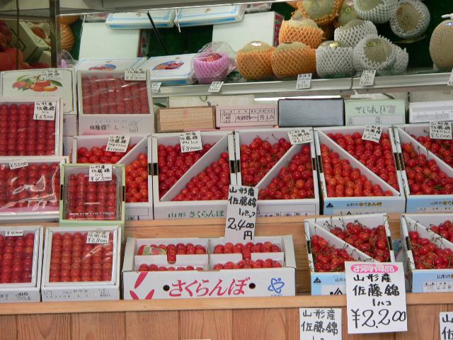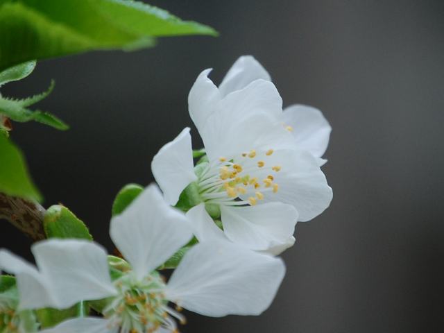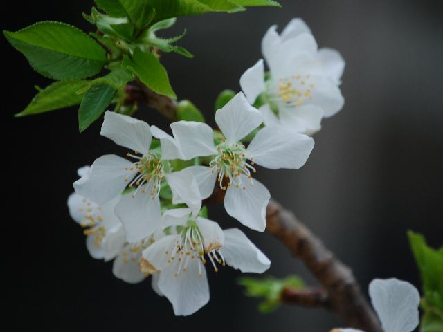 佐藤錦(サトウニシキ) 春の花 2016年04月23日 西洋実桜(セイヨウミザクラ)はバラ科サクラ属の落葉高木である。通称を桜ん坊(サクランボ)といい、広く栽培されている。原産地はヨーロッパで、西アジアからヨーロッパ、北アフリカにかけて分布する。樹高は15メートルから20メートルくらいになる。葉は長い楕円形で、互い違いに生える(互生)。葉の先は尖り、縁にはぎざぎざがある(鋸歯)。葉の裏側の葉脈上には軟毛が生える。日本へ渡来したのは1868年(明治元年)である。気候的な適性から山形県をはじめとする東北地方や北海道の日本海側で栽培されるようになった。山形県では桜ん坊(サクランボ)が「県の木」に指定され、佐藤錦(サトウニシキ)などの品種が生まれている。佐藤錦(サトウニシキ)の始まりは1912年(大正元年)のことである。山形県東根市の佐藤栄助さんが、ナポレオンと黄玉(キダマ)を交配してできたと推定される実生から育成を開始した。開花時期は4月から5月である。葉の展開した後に花を咲かせる。桜(サクラ)に似た5弁の白い花が散状に集まって咲く。萼は反り返っている。花の後にできる実は直径2センチくらいの核果(水分を多く含み中に種が1つある)で、6月から7月に赤く熟する。属名の Prunus はラテン語の「plum(スモモ)」からきている。種小名の avium は「鳥の」という意味である。花の写真は4月に埼玉県花と緑の振興センターで撮った。実の写真は6月に山形市内で撮った。学名:Prunus avium 'Satounisiki'★この花がやがて実れば桜ん坊 ほっぺの落ちる佐藤錦に 花図鑑植物図鑑ミラーサイト|味の麺匠戸田久|おこめの鬼平|フロム蔵王|花の本屋さん|楽天トラベル|PR