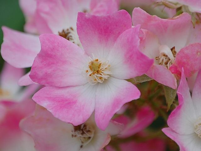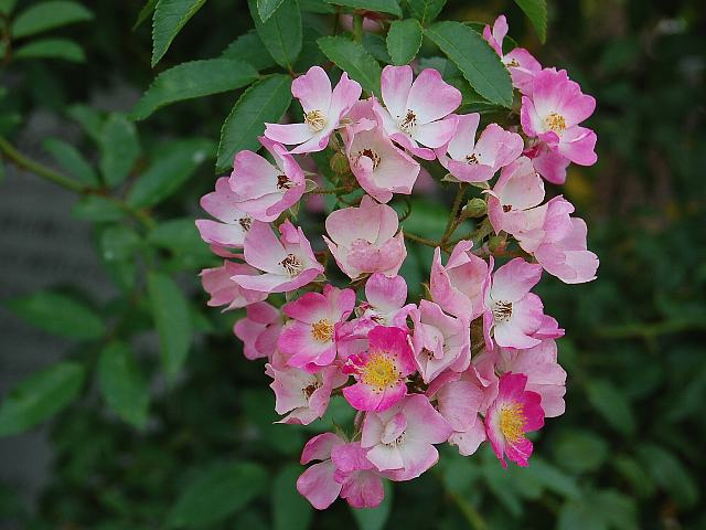 バレリーナ 秋の花 2012年11月04日 バレリーナ(Ballerina)はバラ科バラ属の落葉低木である。ハイブリッドムスク系(Hybrid Musk:HMsk)と呼ばれるものの1つで、四季咲きの小輪である。1937年にイギリスのベントール(Bentall)によって作出された。樹高は200~300センチくらいである。樹形は半蔓性である。花には微香がある。開花時期は5~11月である。花径3センチくらいの一重の平咲き、花の色は白地に淡いピンクである。写真は9月に神奈川県立フラワーセンター大船植物園で撮った。学名:Rosa 'Ballerina'★枝覆い咲く薔薇の花小さくて 群れなし踊る姿に見えて花図鑑植物図鑑|味の麺匠戸田久|おこめの鬼平|フロム蔵王|花の本屋さん|楽天トラベル|