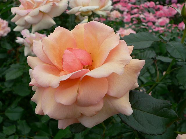 フレグラント・アプリコット 秋の花 2012年10月29日 フレグラント・アプリコット(Fragrant Apricot)はバラ科バラ属の落葉低木である。フロリブンダ系(Floribunda:FL)と呼ばれるものの1つで、四季咲きの中輪である。1998年にアメリカJackson & Perkins社のザリー(Keith W. Zary)によって作出された。樹高は80~120センチくらいである。樹形は半直立性である。花には強い香りがある。開花時期は5~11月である。花径10センチくらいの剣弁高芯咲きの八重で、花の色は杏色である。花弁数は30枚くらいである。写真は10月に神奈川県立フラワーセンター大船植物園で撮った。学名:Rosa 'Fragrant Apricot'★薔薇らしい花の香りに酔いながら 姿かたちもまたよきかなと花図鑑植物図鑑|味の麺匠戸田久|おこめの鬼平|フロム蔵王|花の本屋さん|楽天トラベル|