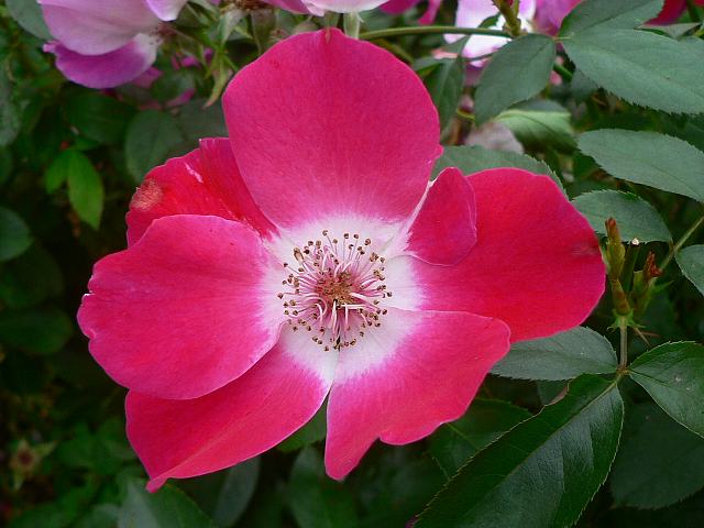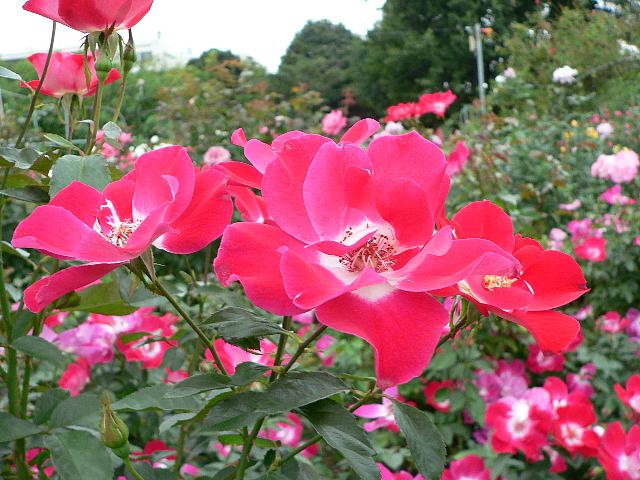 連弾(レンダン) 秋の花 2012年11月01日 連弾(レンダン)はバラ科バラ属の落葉低木である。フロリブンダ系(Floribunda:FL)と呼ばれるものの1つで、四季咲きの中輪である。1987年に京成バラ園芸の鈴木省三さんによって作出された。樹高は50~100センチくらいである。樹形は半横張り性である。花には微香がある。開花時期は5~11月である。花径8センチくらいの平咲きの一重で、花の色は緋紅色で真ん中が白い。写真は10月に神奈川県立フラワーセンター大船植物園で撮った。学名:Rosa 'Rendan'★連弾の由来はどこにあるのかな 競い咲きする花の姿か花図鑑植物図鑑|味の麺匠戸田久|おこめの鬼平|フロム蔵王|花の本屋さん|楽天トラベル|