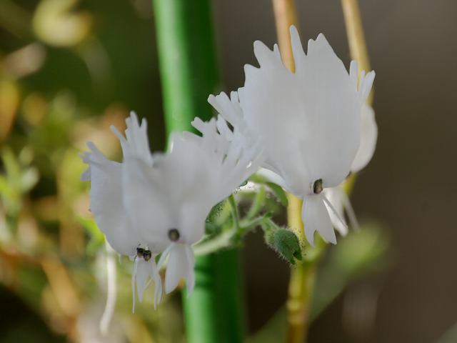 スキザンツス・カンディドス 秋の花 2012年10月06日 スキザンツス・カンディドスはナス科スキザンツス属(コチョウソウ属)の一年草である。属名の読み方は「シザンサス」とするものもある。この属の原産地はチリだが、ヨーロッパで作出された園芸品種がシザンサスの名で流通している。また、同属のスキザンツス・ピンナツス(Schizanthus pinnatus)に胡蝶草(コチョウソウ)の和名がある。本種の原産地もチリで、標高500~2000メートルの山地の林の中に生える。草丈は60~90センチくらいである。茎はよく枝分かれをする。葉は披針形(笹の葉のような形)で、互い違いに生える(互生)。開花時期は夏から秋である。花径3~4センチの白い蝶形の花をつける。花冠の先は細かく裂ける。属名の Schizanthus はギリシャ語の「schizo(裂ける)+anthos(花)」からきている。種小名の candidus は「純白の」という意味である。写真は10月に神代植物公園で撮った。学名:Schizanthus candidus★蘭の花思わすような咲き方に 見とれてしまう世の中広い花図鑑植物図鑑|味の麺匠戸田久|おこめの鬼平|フロム蔵王|花の本屋さん|楽天トラベル|