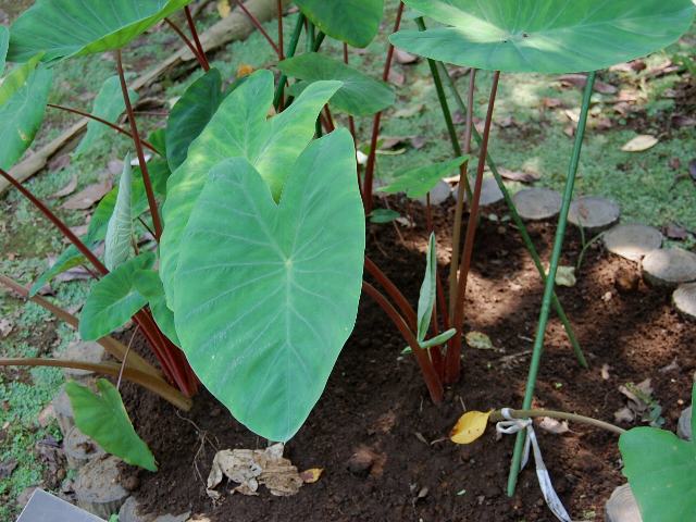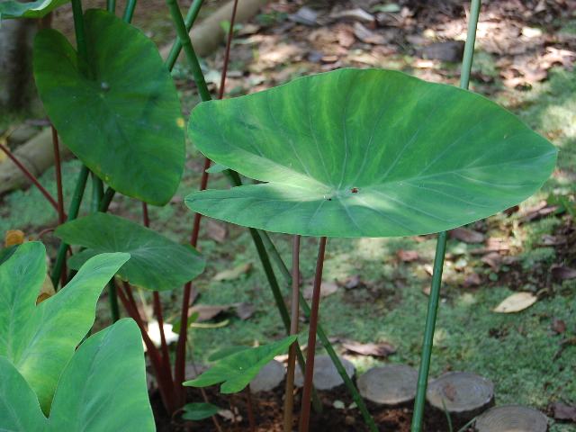 里芋(サトイモ) 秋の花 2012年09月24日 里芋(サトイモ)はサトイモ科サトイモ属の多年草である。原産地はインドの東部やマレー半島だと考えられている。現在では、熱帯・亜熱帯地域で広く栽培されている。英名はタロ(taro)である。そこからタロ芋(タロイモ)とも呼ばれる。日本へは稲作よりも早く縄文時代に渡来したと考えられている。日本で栽培されているのは耐寒性のある品種群である。品種改良を繰り返した結果、花はあまり咲かない。里芋(サトイモ)の名は山地に自生する山芋(ヤマイモ)に対してつけられたものである。塊茎を食用とするほか、葉柄も芋茎(ズイキ)といって食用にされる。属名の Colocasia はギリシャ語の「colon(食物)+casein(装飾)」からきている。食用にも飾りにもなるということから名づけられた。種小名の esculenta は「食用になる」という意味である。写真は9月に市川市万葉植物園で撮った。学名:Colocasia esculenta★独特の葉っぱの形面白い 里芋畑車窓に続き花図鑑植物図鑑|味の麺匠戸田久|おこめの鬼平|フロム蔵王|花の本屋さん|楽天トラベル|
