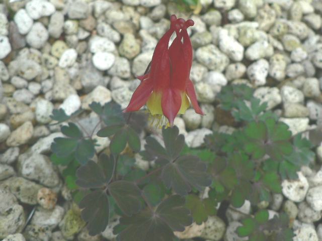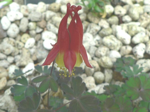 アクイレギア・カナデンシス・ナナ 春の花 2016年04月15日 カナダ苧環(カナダオダマキ)はキンポウゲ科オダマキ属(アクイレギア属)の多年草である。アクイレギア・カナデンシスで表示するものもある。アクイレギア属は世界に70種くらいが分布する。また、多くの園芸品種が作出されている。日本にも苧環(オダマキ)などがあり、属名の和名をオダマキ属という。カナダ苧環(カナダオダマキ)の原産地は北アメリカである。カナダのノバ・スコシア半島からロッキー山脈以東の合衆国のテキサス州にかけて分布する。ナナ(Nana)はその園芸品種で、矮性種である。草丈は15センチから20センチくらいである。根際から出る葉は3出複葉(1枚の葉が3つの小さな葉に分かれた形)である。開花時期は4月から6月くらいである。茎先から数輪の花を下向きにつける。花びらのように見えるのは萼片である。萼弁5枚は紅色である。花弁5枚は黄色である。雄しべが花弁よりも外に飛び出している。花弁のつけ根の部分は長く伸びて距となる。花の後にできる実は袋果(熟すと果皮が自然に裂けて種子を放出する)である。属名の Aquilegia はラテン語の「aquila(鷲)」からきている。曲がった距がワシの距に似ていることから名づけられた。種小名の canadensis は「カナダの」という意味である。園芸品種名の Nana は「小さい」という意味である。写真は4月に大阪市の咲くやこの花館で撮った。学名:Aquilegia canadensis 'Nana'★三角の屋根は小人の住処かな お伽の国にワープしたよう花図鑑植物図鑑ミラーサイト|味の麺匠戸田久|おこめの鬼平|フロム蔵王|花の本屋さん|楽天トラベル|