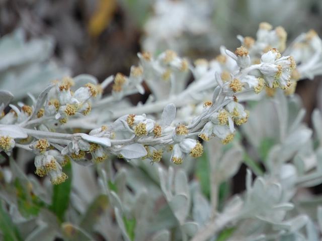 白蓬(シロヨモギ) 秋の花 2012年09月13日 白蓬(シロヨモギ)はキク科ヨモギ属の多年草である。北海道から本州の茨城県・新潟県にかけて分布し、日当たりのよい海岸の砂地に生える。海外では、カムチャツカ地方にも分布する。草丈は20~60センチくらいである。地下茎を長く伸ばして繁殖する。全体が綿毛で覆われていて白っぽい。葉は厚く、羽状に中裂する。開花時期は7~10月である。茎の上部に総状花序(柄のある花が花茎に均等につく)を出し、花径8~10ミリくらいの小さな黄色い花(頭花)をたくさんつける。頭花は筒状花だけからなり、真ん中に両性花、周りに雄花がつく。花の後にできる実はそう果(熟しても裂開せず、種子は1つで全体が種子のように見えるもの)である。属名の Artemisia はギリシャ神話の女神「アルテミス(Artemis)」からきている。この属の植物が婦人病に効くということから名づけられた。種小名の stelleriana は18世紀のドイツの植物分類学者「ステラー(G. W. Steller)さんの」という意味である。写真は9月に北大植物園で撮った。学名:Artemisia stelleriana★全身が白い綿毛に覆われた 不思議な姿砂浜に見せ花図鑑植物図鑑|味の麺匠戸田久|おこめの鬼平|フロム蔵王|花の本屋さん|楽天トラベル|