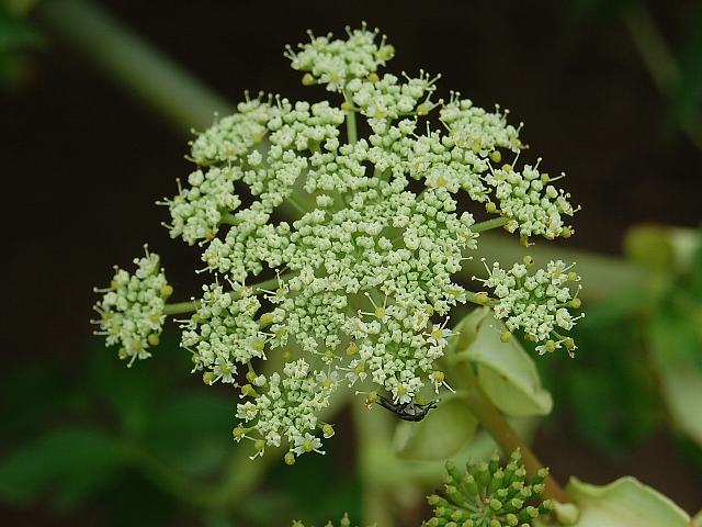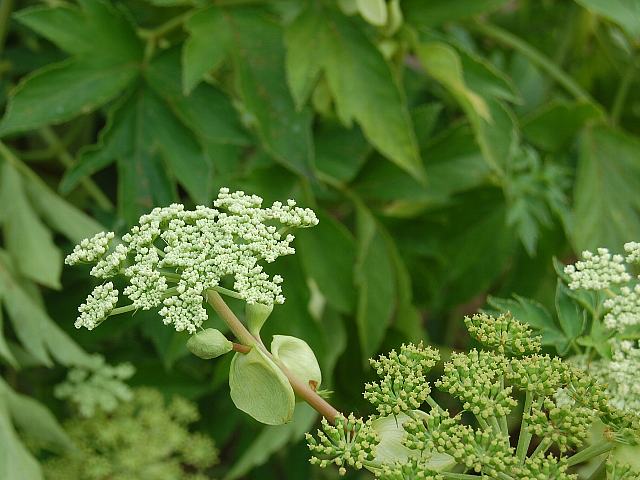 明日葉(アシタバ) 秋の花 2012年09月14日 明日葉(アシタバ)はセリ科シシウド属の多年草である。日本固有種である。房総半島から紀伊半島にかけての太平洋岸の暖地や伊豆七島、小笠原諸島に分布し、海岸に生える。草丈は80~120センチくらいである。葉は大きな羽状複葉で、厚く柔らかい。若葉を食用とする。和名の由来は、発育が速くて、今日摘んでも明日には新芽が出るということからきている。八丈島が主な産地ということで、八丈草(ハチジョウソウ)の別名もある。開花時期は5~10月である。クリーム色の花を傘状につける。花の後にできる実は長い楕円形の分果(複数の子房からできた果実)で、翼がある。属名の Angelica はラテン語の「angelus(天使)」からきている。この属の植物に強心剤として効果のあるものがあり、死者を蘇らせるというところから名づけられた。種小名の keiskei は明治初期の植物学者「伊藤圭介さんの」という意味である。写真は9月に東京都薬用植物園で撮った。学名:Angelica keiskei★逞しく育つ明日葉見つめつつ 島の暮らしに思いを馳せて花図鑑植物図鑑|味の麺匠戸田久|おこめの鬼平|フロム蔵王|花の本屋さん|楽天トラベル|