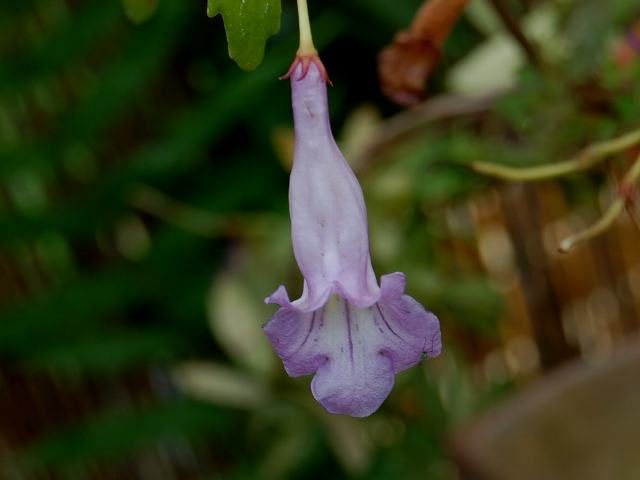 石弔蘭(シシンラン) 夏の花 2012年08月16日 石弔蘭(シシンラン)はイワタバコ科シシンラン属の多年草である。日本固有種である。本州の伊豆半島及び京都府以西、四国、九州に分布し、木の幹や岩の上に着生する。環境省のレッドリスト(2007)では、「絶滅の危険が増大している種」である絶滅危惧II類(VU)に登録されている。草丈は20~50センチくらいである。茎は木や岩に着生する苔(コケ)の中を這い、疎らに枝分かれをする。葉は肉厚の楕円形で、向かい合って生える(対生)。3~4枚が輪になって生える(輪生)場合もある。葉の縁には粗いぎざぎざ(鋸歯)がある。開花時期は7~8月である。枝の上部の葉の脇に白ないし淡い紫色の花をつける。花は長さが4~5センチの筒状で、先が唇形になる。上唇は2つに裂け、下唇が3つに裂ける。雄しべは4本で、2本が長い。花の後にできる実は細長いさく果(熟すると下部が裂け、種子が散布される果実)である。属名の Lysionotus はギリシャ語の「lysis(分離)+notos(背)」からきている。実の長い鞘が裂ける様子からつけられた名である。種小名の pauciflorus は「少数花の」という意味である。写真は9月に神奈川県立フラワーセンター大船植物園で撮った。学名:Lysionotus pauciflorus★這いながら花ぶら下げる石弔蘭 自然のものを見つけてみたい植物図鑑花図鑑|味の麺匠戸田久|おこめの鬼平|フロム蔵王|花の本屋さん|楽天トラベル|