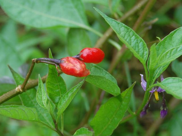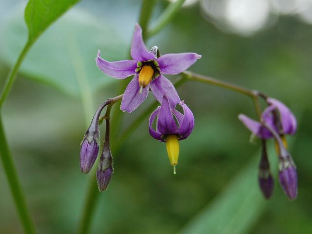 大丸葉の保呂之(オオマルバノホロシ) 夏の花 2012年08月18日 大丸葉の保呂之(オオマルバノホロシ)はナス科ナス属の多年草である。北方領土を含む北海道から本州の広島県にかけて分布し、低山の湿原などに生える。海外では、サハリンにも分布する。「保呂之」というのは同じナス科の鵯上戸(ヒヨドリジョウゴ)の古名である。大きい丸葉の鵯上戸(ヒヨドリジョウゴ)ということでこの名がついた。草丈は30~70センチくらいである。茎は柔らかく蔓状である。葉は卵形で、互い違いに生える(互生)。葉の先は尖り、縁にぎざぎざはない(全縁)。開花時期は7~9月である。茎先に集散花序(最初の花が枝先につき、その下に次々と側枝を出して花がつく)を出し、淡い紫色の花を数個つける。花径は10~15ミリくらいである。花冠は5つに深く切れ込み、先は反り返る。花の真ん中は淡い緑色をしている。花の後にできる実は楕円形の液果(果皮が肉質で液汁が多い実)で、赤く熟してきれいだが有毒である。属名の Solanum はラテン語の「solamen(安静)」からきているという説がある。種小名の megacarpus は「大きな実の」という意味である。写真は8月に日光植物園で撮った。学名:Solanum megacarpus★紫の茄子そっくりの花咲かせ 蔓を伝って居場所広げて花図鑑植物図鑑|味の麺匠戸田久|おこめの鬼平|フロム蔵王|花の本屋さん|楽天トラベル|PR