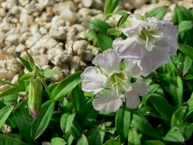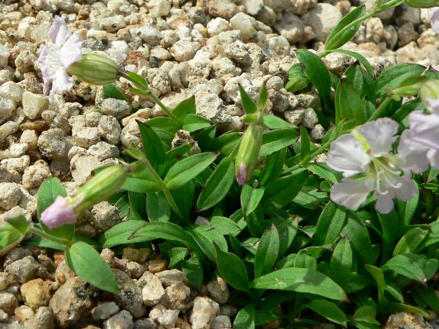 神威ビランジ(カムイビランジ) 夏の花 2012年08月09日 神威ビランジ(カムイビランジ)はナデシコ科マンテマ属の多年草である。北海道固有種である。日高山脈と十勝地方に分布し、高山の岩礫地に生える。環境省のレッドリスト(2007)では、「IA類ほどではないが、近い将来における絶滅の危険性が高い種」である絶滅危惧IB類(EN)に登録されている。和名の由来は、日高山脈のカムイエクウチカウシ山で発見されたことからきている。なお、「ビランジ」の名の由来は不明である。牧野富太郎博士も由来不明としている。草丈は5~10センチくらいである。根際から生える葉は披針形で、そこから茎が束生する。葉には柄はなく、葉の縁に疎らに短い毛が生える。茎につく葉は向かい合って生える(対生)。開花時期は8月である。茎先に普通は1輪の淡い紅紫色の花をつける。花びらは5枚で、花びらの先は少しへこむ。萼は筒形で、ほとんど毛は生えておらず、先は5つに裂ける。花の後にできる実はさく果(熟すると下部が裂け、種子が散布される果実)である。属名の Silene はギリシャ神話の「シレネス(Silenes、バッカスの養父)」からきている。この属には粘液性の分泌液を出すものが多いので、これを酔って泡だらけになった様子にたとえた。種小名の hidaka-alpina は「日高山脈に生える」という意味である。写真は4月に大阪市の咲くやこの花館で撮った。学名:Silene hidaka-alpina★険しくて人寄せつけぬ峰に咲く 北国の花夏は短く花図鑑植物図鑑|味の麺匠戸田久|おこめの鬼平|フロム蔵王|花の本屋さん|楽天トラベル|