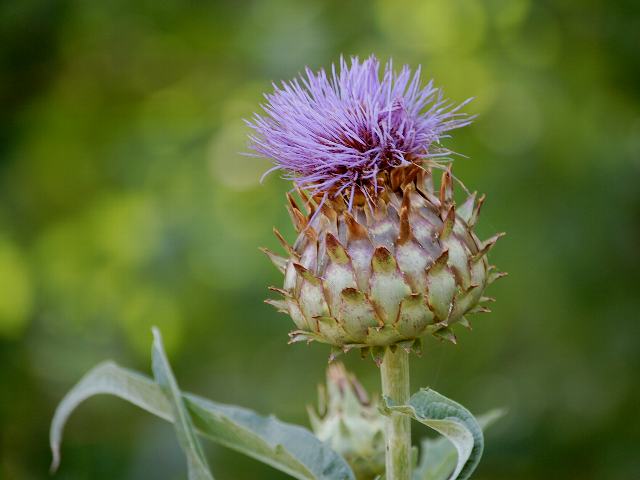 カルドン 夏の花 2012年08月13日 カルドン(cardoon)はキク科チョウセンアザミ属の多年草である。原産地は地中海沿岸地方である。草丈は150~200センチくらいである。葉は羽状に深く裂け、互い違いに生える(互生)。葉の柄には棘がたくさんある。開花時期は7~9月である。茎先に花径10~15センチくらいある淡い紫色の大きな花(頭花)をつける。総包片(萼のところにある棘のような葉)は棘状となる。近縁種の朝鮮薊(チョウセンアザミ)の場合は棘状とならない。花の後にできる実はそう果(熟しても裂開せず、種子は1つで全体が種子のように見えるもの)である。ヨーロッパでは、葉の柄や根が食用とされる。属名の Cynara はギリシャ語の「cyno(犬)」からきている。総苞の周りの棘が犬の歯に似ていることから名づけられた。種小名の cardunculus は「小さいアザミ」という意味である。写真は7月につくば植物園で撮った。学名:Cynara cardunculus★カルドンが仁王立ちする夏の午後 幻影かもと目をこすりつつ花図鑑植物図鑑|味の麺匠戸田久|おこめの鬼平|フロム蔵王|花の本屋さん|楽天トラベル|PR