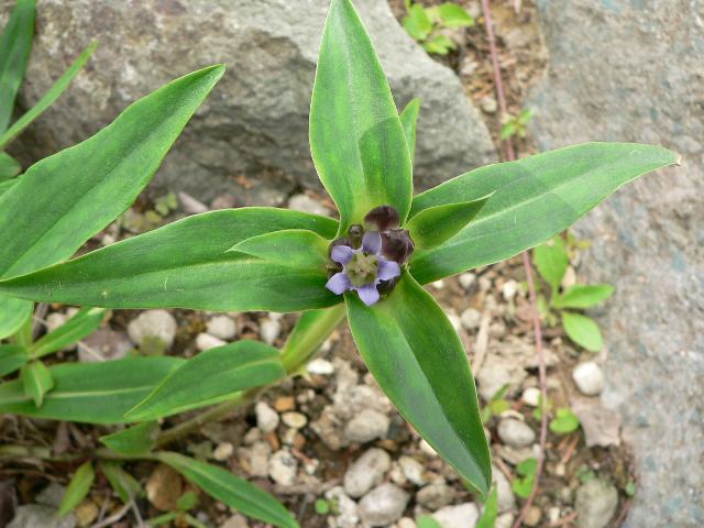 ゲンチアナ・クラッシカウリス 夏の花 2012年07月29日 ゲンチアナ・クラッシカウリスはリンドウ科リンドウ属の多年草である。原産地は中国である。南西部の四川省、貴州省からチベット、ブータンにかけて分布し、標高2300~4300メートルの山の斜面や林の縁などに生える。草丈は30~40センチである。根茎は太い。根際から生える葉は長い楕円形で、ロゼット状(茎から葉が重なり合って出て地に接し、円座形になったもの)となる。葉の先は尖り、つけ根の部分は次第に狭くなる。茎につく葉は上部へいくほど大きくなり、茎を抱く。開花時期は7~8月である。茎先につく花は長さ2センチくらいの筒状で、筒の部分は黄白色、先は濃い青紫色になる。花冠の内側には斑点がある。花は日が当たると花の先の裂片が開く。花の中には真ん中に花柱(雌しべ)があり、その周りに5本の雄しべがある。花の後にできる実はさく果(熟すると下部が裂け、種子が散布される果実)である。属名の Gentiana は紀元前のイリリア王「ゲンティウス(Gentius)」の名にちなむ。種小名の crassicaulis は「太い茎の」という意味である。根茎を干したものは生薬とされ、鎮痛、抗炎症、解熱、抗リウマチ、利尿などの薬効がある。写真は6月に富山県中央植物園で撮った。学名:Gentiana crassicaulis★西域の山の斜面に咲くという 竜胆の花色合い深く花図鑑植物図鑑|味の麺匠戸田久|おこめの鬼平|フロム蔵王|花の本屋さん|楽天トラベル|