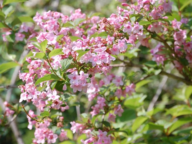 藪空木(ヤブウツギ) 夏の花 2012年05月24日 藪空木(ヤブウツギ)はスイカズラ科タニウツギ属の落葉低木である。日本固有種である。本州の関東地方から中国地方の太平洋側と四国に分布し、山地に生える。樹高は2~4メートルくらいである。樹皮は灰褐色ないし灰黒色である。葉は楕円形で、向かい合って生える(対生)。葉の表面は緑色、裏面は灰緑色である。葉の先は尖り、縁には細かいぎざぎざ(鋸歯)がある。葉の両面には毛が生えている。開花時期は5~6月である。葉の脇に長さ25~35ミリくらいの紅紫色をした漏斗状の花を数輪ずつつける。花の先は5つに裂けている。雄しべは5本である。長い雌しべが花冠から突き出している。花の後にできる実はさく果(熟すると下部が裂け、種子が散布される果実)で、わずかに湾曲する。なお、毛空木(ケウツギ:Weigela sanguinea)の別名を「藪空木」という。この学名を本種の異名とする見解と異種とする見解がある。属名の Weigela はドイツの科学者「ウェイゲル(Weigel)さん」の名からきている。種小名の floribunda は「花の多い」という意味である。写真は5月につくば植物園で撮った。学名:Weigela floribunda★濃い色の花の写真が多いけど これはピンクだいつこうなるの花図鑑植物図鑑|味の麺匠戸田久|おこめの鬼平|フロム蔵王|花の本屋さん|楽天トラベル|