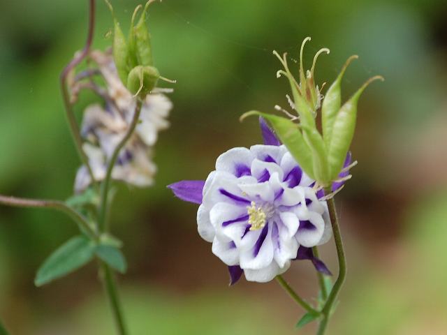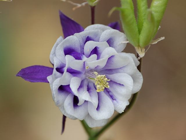 ブルーバロウ 春の花 2012年05月03日 西洋苧環(セイヨウオダマキ:Aquilegia vulgaris)はキンポウゲ科オダマキ属の多年草である。北ヨーロッパからシベリアにかけて分布し、明るい林の中に生える。草丈は60~90センチくらいである。このうち八重咲きのものをアキレギア・ブルガリス・ステラタ(Aquilegia vulgaris var. stellata)という。ブルーバーロウ(Blue Barlow)はその園芸品種である。ノラバロウ(Nora Barlow)の青花品種である。ほかにも、ブラックバロウ(Black Barlow)やローズバロウ(Rose Barlow)などがある。根際から生える葉は2回3出複葉である。3つに枝分かれした先にそれぞれ三つ葉をつけて1枚の葉となる。開花時期は5~6月である。花は八重咲きで青と白とのコントラストが美しい。距(花冠のつけ根が後ろに飛び出たもの)がないのが特徴である。花の後にできる実は袋果(熟すと果皮が自然に裂けて種子を放出する)である。属名の Aquilegia はラテン語の「aquila(鷲)」からきている。曲がった距がワシの距に似ていることから名づけられた。種小名の vulgaris は「普通の」という意味である。変種名の stellata は「星形の」という意味である。写真は5月につくば植物園で撮った。学名:Aquilegia vulgaris var. stellata 'Blue Barlow'★苧環と思えぬような姿して どこか違うよ西洋の花花図鑑植物図鑑|味の麺匠戸田久|おこめの鬼平|フロム蔵王|花の本屋さん|楽天トラベル|
