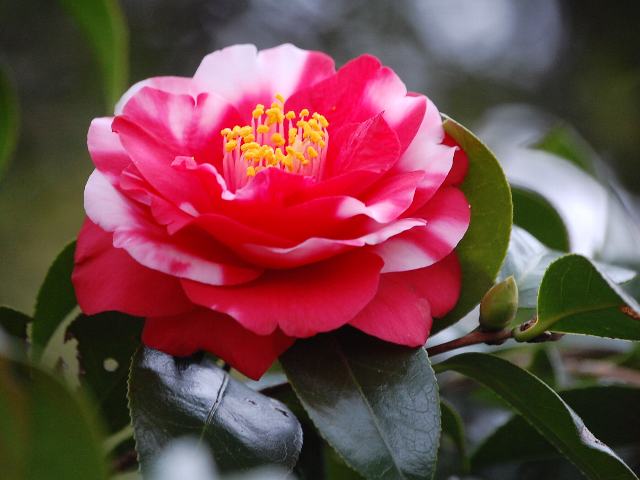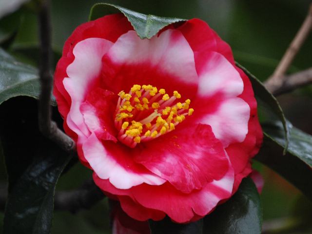 鈴鹿の関(スズカノセキ) 春の花 2012年04月29日 藪椿(ヤブツバキ)はツバキ科ツバキ属の常緑低木~高木である。本州の青森県から沖縄にかけて分布する。一般的に椿(ツバキ)と呼ばれ、園芸品種の基本種となっている。鈴鹿の関(スズカノセキ)もその園芸品種の1つである。江戸古典種である。樹高は1~3メートルである。葉は長い楕円形で、向かい合って生える(対生)。開花時期は3~4月である。花は八重咲きの中輪(花径10~12センチ)で、濃い紅地に白い斑が入る。雄しべは筒しべとなる。元品種の鈴鹿山(スズカヤマ)は白斑がない。属名の Camellia はイエズス会の宣教師「カメル(G. J. Kamell)さん」の名からきている。マニラに住み、東アジアの植物を採集した。種小名の japonica は「日本の」という意味である。写真は3月に埼玉県花と緑の振興センターで撮った。学名:Camellia japonica 'Suzukanoseki'★紅白の色艶やかに咲き競う 鈴鹿の関に目を奪われて花図鑑植物図鑑|味の麺匠戸田久|おこめの鬼平|フロム蔵王|花の本屋さん|楽天トラベル|