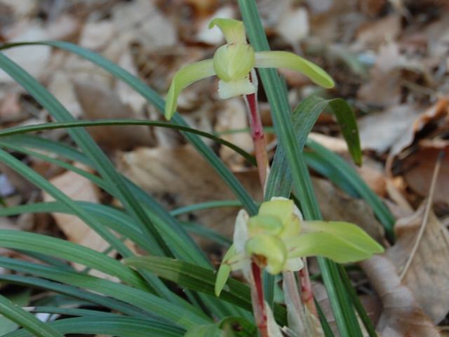 春蘭(シュンラン) 春の花 2012年04月24日 春蘭(シュンラン)はラン科シュンラン属(シンビジウム属)の多年草である。北海道から九州にかけて分布し、低山の林の中や傾斜地に生える。海外では、朝鮮半島、台湾、中国にも分布する。草丈は10~25センチくらいである。葉は長さ20~35センチくらい、幅5~20ミリくらいの線形で、根際からたくさん生える。葉は硬く、縁にはぎざぎざ(鋸歯)がある。開花時期は3~4月ころである。花茎の先に普通は1つ、稀に2つの花を横向きにとける。花の色は淡い黄緑色である。花びらは6枚あるように見えるが、3枚は萼片である。垂れ下がる唇弁には紫色の斑点がある。稀に斑点のないものがあり、素心と呼ばれる。花の後にできる実はさく果(熟すると下部が裂け、種子が散布される果実)である。実の形は紡錘形で、6~7月になって熟すると茎が葉の上まで伸び、上向きに直立する。俳句の季語は春である。属名の Cymbidium はギリシャ語の「cymbe(舟)+eidso(形)」からきている。唇弁の形から名づけられた。種小名の goeringii は採集家「ゲーリング(Goering)さんの」という意味である。写真は4月に東京都薬用植物園で撮った。学名:Cymbidium goeringii★さりげなく咲いて春蘭時告げる 自分の色に自分を染めて花図鑑植物図鑑|味の麺匠戸田久|おこめの鬼平|フロム蔵王|花の本屋さん|楽天トラベル|