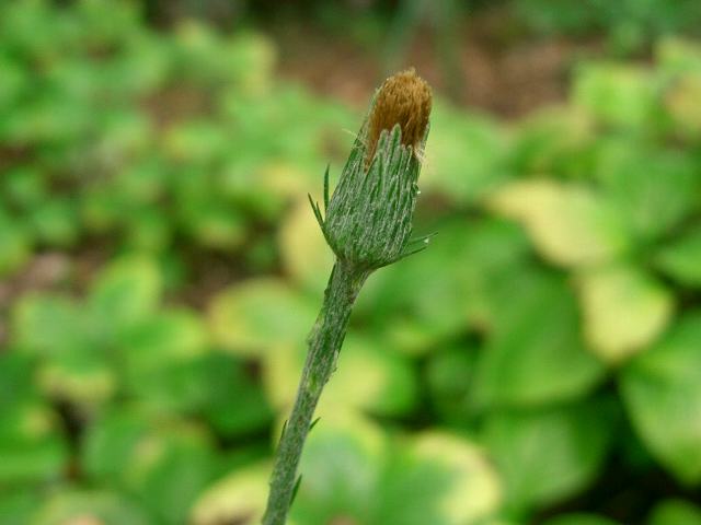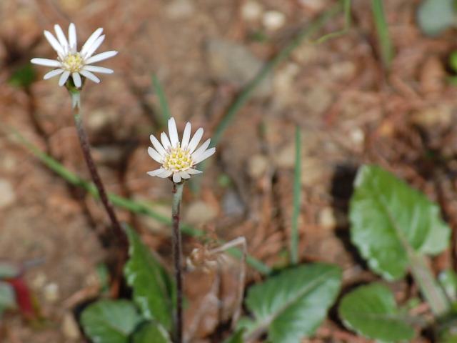 千本槍(センボンヤリ) 春の花 2012年04月25日 千本槍(センボンヤリ)はキク科センボンヤリ属の多年草である。北方領土を含む北海道から九州にかけて分布し、山地の日当たりのよい草地などに生える。海外では、中国、サハリン、シベリアなどにも分布する。春の草丈は10センチくらいである。春の葉は卵形で、縁にはぎざぎざがある(鋸歯)。葉の裏面には白い毛が密生する。開花時期は4~5月である。春の花は花径15ミリくらいの頭花で、茎先につく。花の真ん中に筒状花があり、周りに裏面が紫色を帯びた白い舌状花がつく。そこから紫蒲公英(ムラサキタンポポ)の別名がある。秋の草丈は30~60センチくらいである。秋の葉は長い楕円形である。開花時期は9~10月である。茎先に舌状花のない蕾のような花をつけ、そのまま結実する。このような花を閉鎖花という。この姿を大名行列の毛槍に見立てたのが名の由来である。属名の Leibnitzia は17世紀のドイツの哲学者・自然科学者「ライプニッツ (G. W. Leibniz)さん」の名からきている。種小名の anandria は「雄しべのない」という意味である。写真は4月につくば植物園で撮った。下の写真は10月に板橋区立赤塚植物園で撮った。学名:Leibnitzia anandria★静々と進む行列先陣は 千本槍か秋の野原で花図鑑植物図鑑|味の麺匠戸田久|おこめの鬼平|フロム蔵王|花の本屋さん|楽天トラベル|