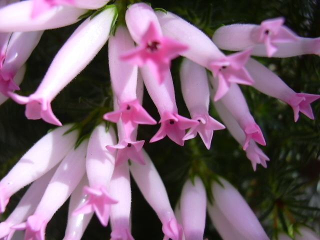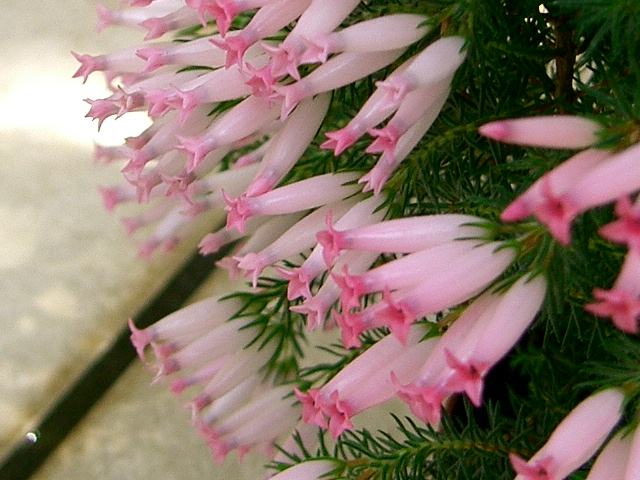 エリカ・グランディフローラ 春の花 2012年04月12日 エリカ・グランディフローラはツツジ科エリカ属の常緑低木である。原産地は南アフリカである。樹高は150センチくらいである。幹は直立し、小枝を多くつける。葉は線状で、先端が尖っている。開花時期は3~5月である。筒状の花が先端付近の葉の脇にたくさんつく。花冠の長さは2~3センチくらいである。花の色は橙色が中心だが、変異が多いという。花の後にできる実はさく果(熟すると下部が裂け、種子が散布される果実)である。属名の Erica はギリシャ語の「erion(軟毛)」からきている。全体に軟毛が生える種類の多いことから名づけられた。種小名の grandiflora は「大きな花の」という意味である。写真は5月に神代植物公園で撮った。学名:Erica grandiflora★筒型のピンクの花が愛らしく ずらりと並ぶ賑わいの中花図鑑植物図鑑|味の麺匠戸田久|おこめの鬼平|フロム蔵王|花の本屋さん|楽天トラベル|