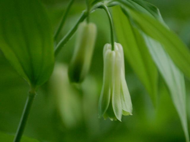 宝鐸草(ホウチャクソウ) 春の花 2012年04月15日 宝鐸草(ホウチャクソウ)はユリ科チゴユリ属の多年草である。分類体系によってはイヌサフラン科とされる。北方領土を含む北海道から九州にかけて分布し、林の中などの陰地に生える。海外では、サハリン、朝鮮半島、中国にも分布する。草丈は30~60センチくらいである。地下からまっすぐ伸びた茎は上部で枝分かれし、途中に葉が互い違いについている。葉は細長い楕円形で、先は尖っている。開花時期は4~5月ころである。茎の上部にいくつかの花柄を出し、その先に長い釣鐘形の花を垂れ下がるようにつける。茎先に垂れる花も全体が緑がかっており、ひっそりと咲く。花被片は内側と外側に3枚ずつある。花被片が合着しないのがアマドコロ属との相違点である。中には雄しべ6本と雌しべがある。花の後にできる実は球形のさく果(熟すると下部が裂け、種子が散布される果実)である。宝鐸というのは、お寺の軒先に下がっている風鈴状のもののことを言う。若芽には毒があるので注意が必要とのことである。属名の Disporum はギリシャ語の「dis(二重の)+spora(種子)」からきている。子房の各室に2つの胚珠があることから名づけられた。種小名の sessile は「柄のない」という意味である。写真は4月につくば植物園で撮った。学名:Disporum sessile★ひっそりと頭(こうべ)を垂れて宝鐸草 思い草にも春の訪れ☆輝ける新緑の中溶け込んで 宝鐸草は春風に揺れ花図鑑植物図鑑|味の麺匠戸田久|おこめの鬼平|フロム蔵王|花の本屋さん|楽天トラベル|