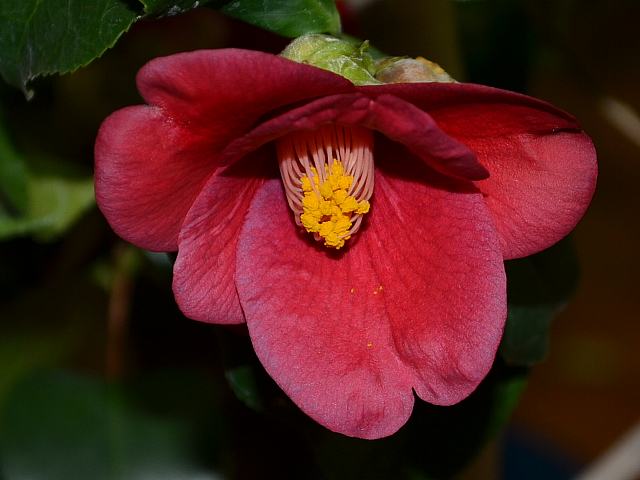 余呉の湖(ヨゴノウミ) 春の花 2016年03月23日 藪椿(ヤブツバキ)はツバキ科ツバキ属の常緑低木から高木である。本州の青森県から沖縄にかけて分布する。一般的に椿(ツバキ)と呼ばれ、園芸品種の基本種となっている。余呉の湖(ヨゴノウミ)もそうした園芸品種の1つである。(椿図鑑参照)琵琶湖湖北にある神社の森に自生していた藪椿(ヤブツバキ)からの選別種である。1960年に伊豆大島在住の育種家である尾川武雄さんによって発表された。樹高は2メートルから4メートルである。葉は楕円形で、向かい合って生える(対生)。早春咲きで、開花時期は1月から4月である。花5センチくらいの艶のある黒紅色をした一重筒咲きの小輪である。雄しべは筒しべである。属名の Camellia はモラビアの出身でイエズス会の宣教師だった「カメル(Georg Joseph Kamel, 1661-1706)さん」の名からきている。マニラに住み、東アジアの植物を採集した。種小名の japonica は「日本の」という意味である。写真は3月に川口市立グリーンセンターで撮った。学名:Camellia japonica 'Yogonoumi'★小粒でも自然の良さを満身に 示し花咲く琵琶湖の椿花図鑑植物図鑑ミラーサイト|味の麺匠戸田久|おこめの鬼平|フロム蔵王|花の本屋さん|楽天トラベル|